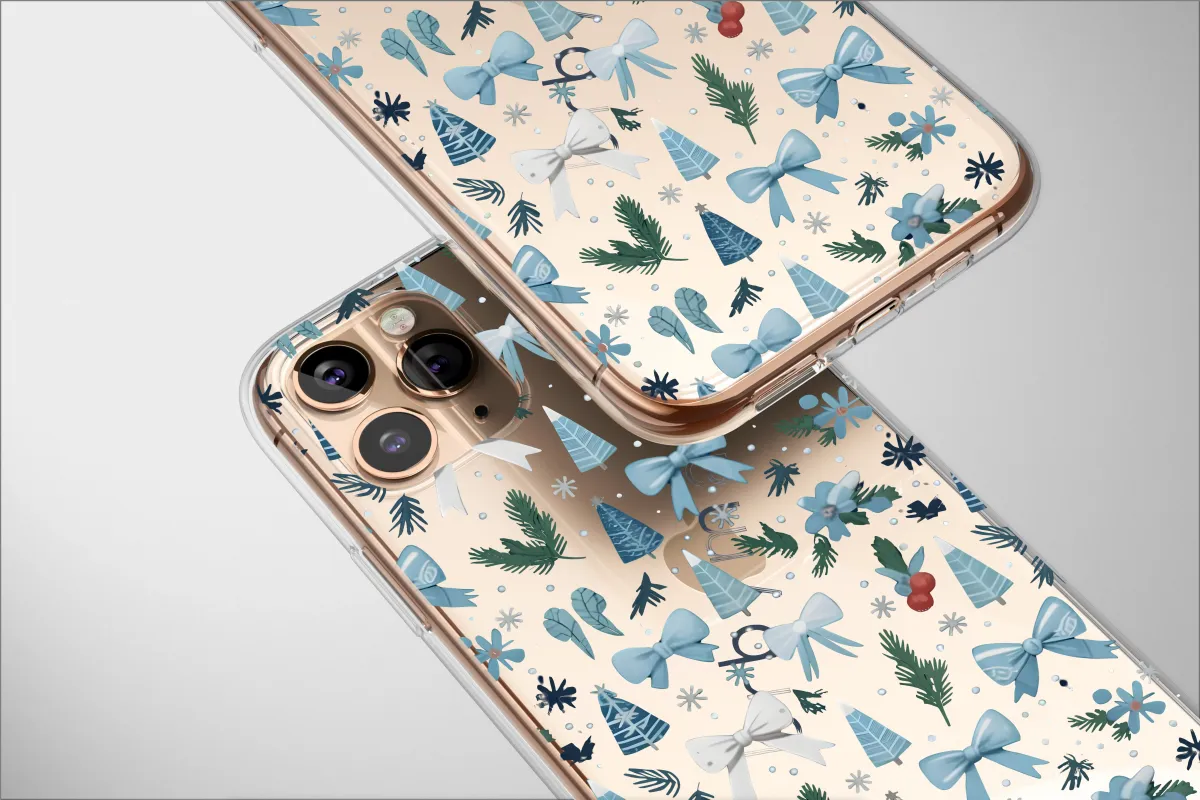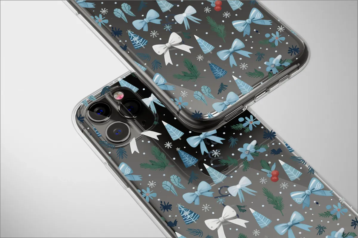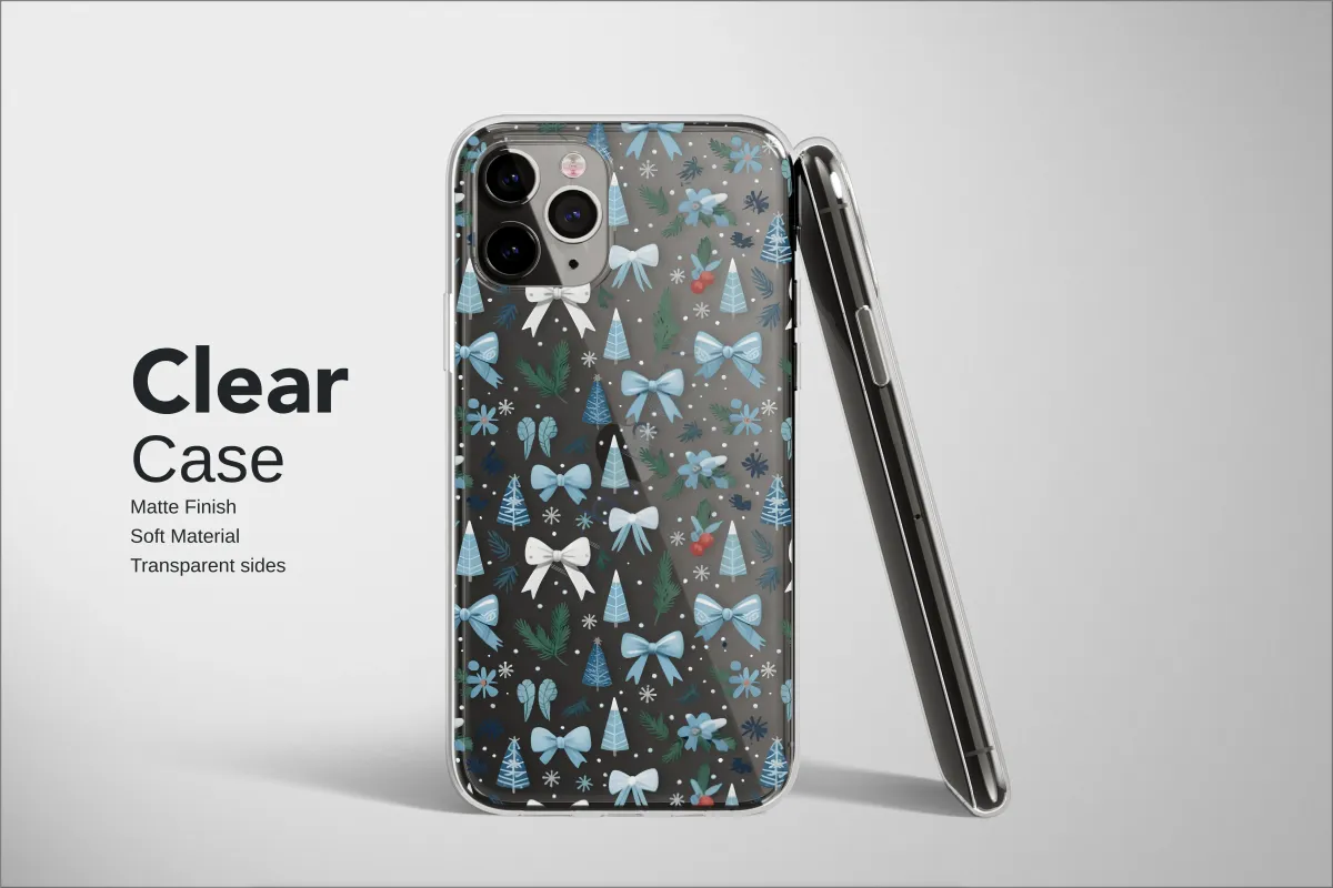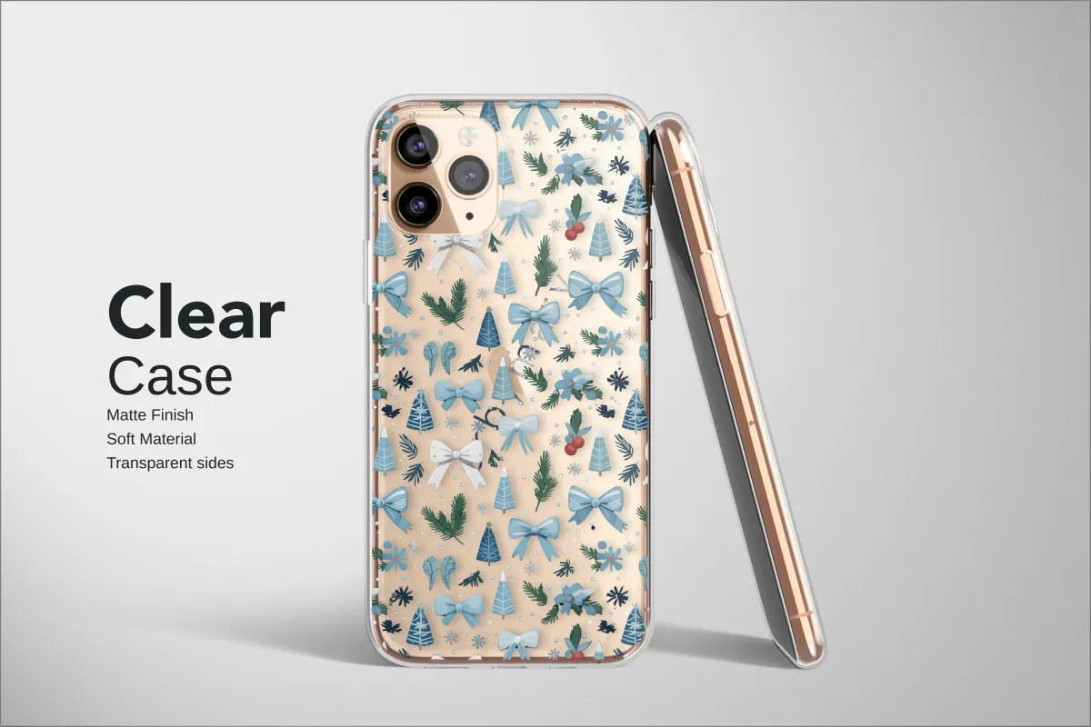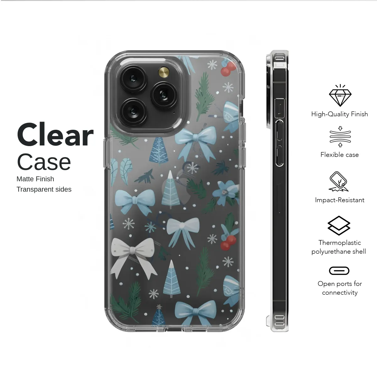 Clear Clear Glitch Art Winter Holiday Pattern Blue Christmas Design Phone Case Cover for iPhone 17 Pro Max 16 15 13 Samsung S25 S24 Pixel 8184