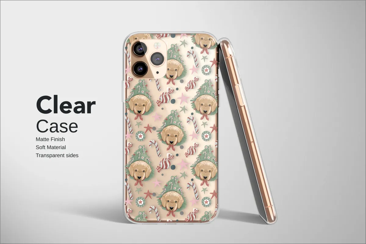 Clear Clear Golden Retriever Christmas Puppy Festive Holiday Pattern Phone Case Cover for iPhone 17 Pro Max 16 15 13 Samsung S25 S24 Pixel 8406