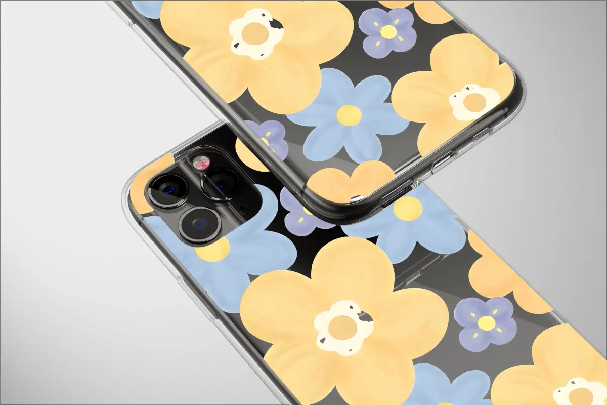 Embrace a touch of retro charm with this groovy floral pattern. This design features a delightful array of stylized flowers in soft pastel shades of yellow, blue, and purple, reminiscent of 70s pop art. The subtle watercolor texture adds a gentle, hand-painted feel, creating a cheerful and whimsical look that brings a pop of vintage-inspired color to your day.