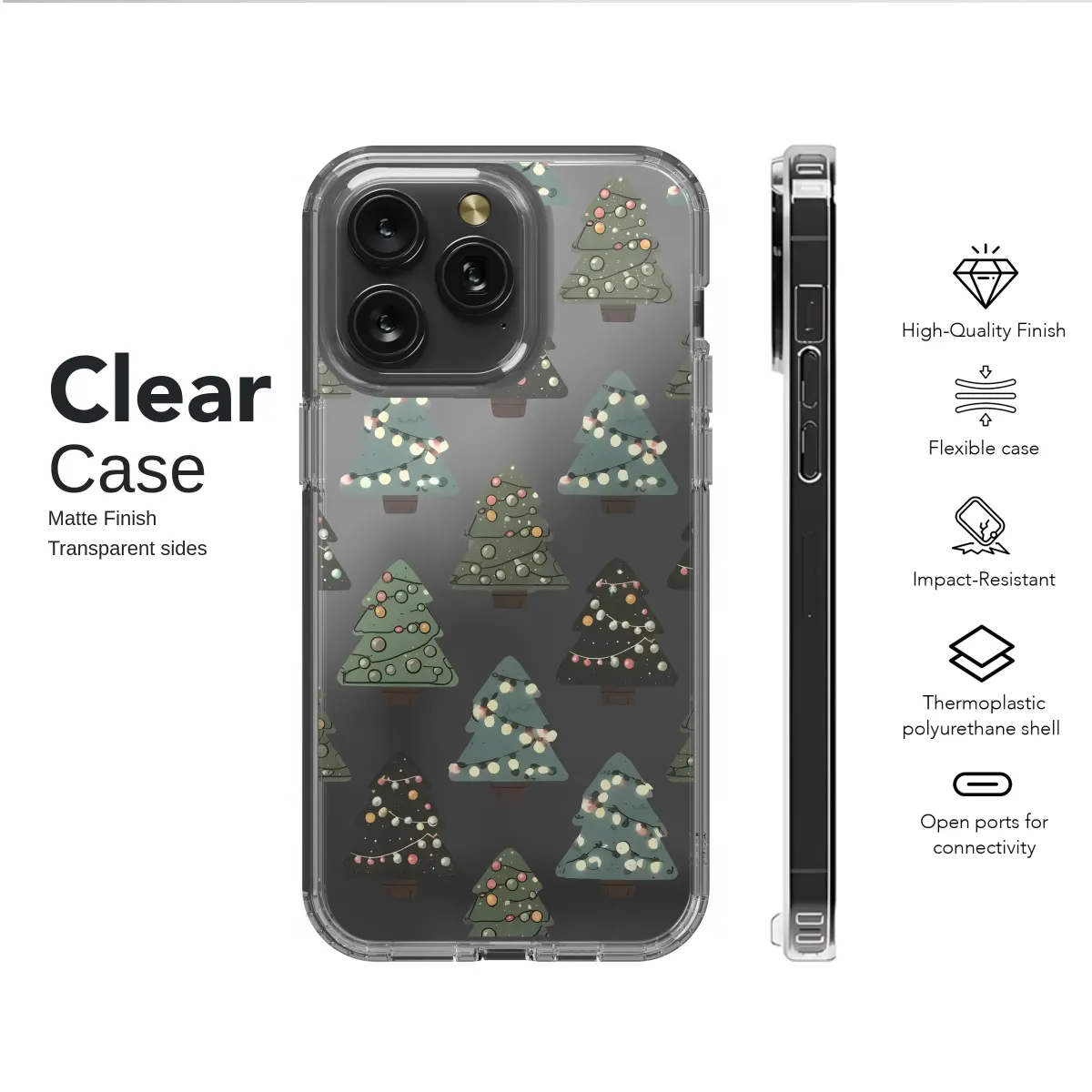 Clear Clear Illustrated Christmas Tree Holiday Pattern Phone Case Cover for iPhone 17 Pro Max 16 15 13 Samsung S25 S24 Pixel 8632