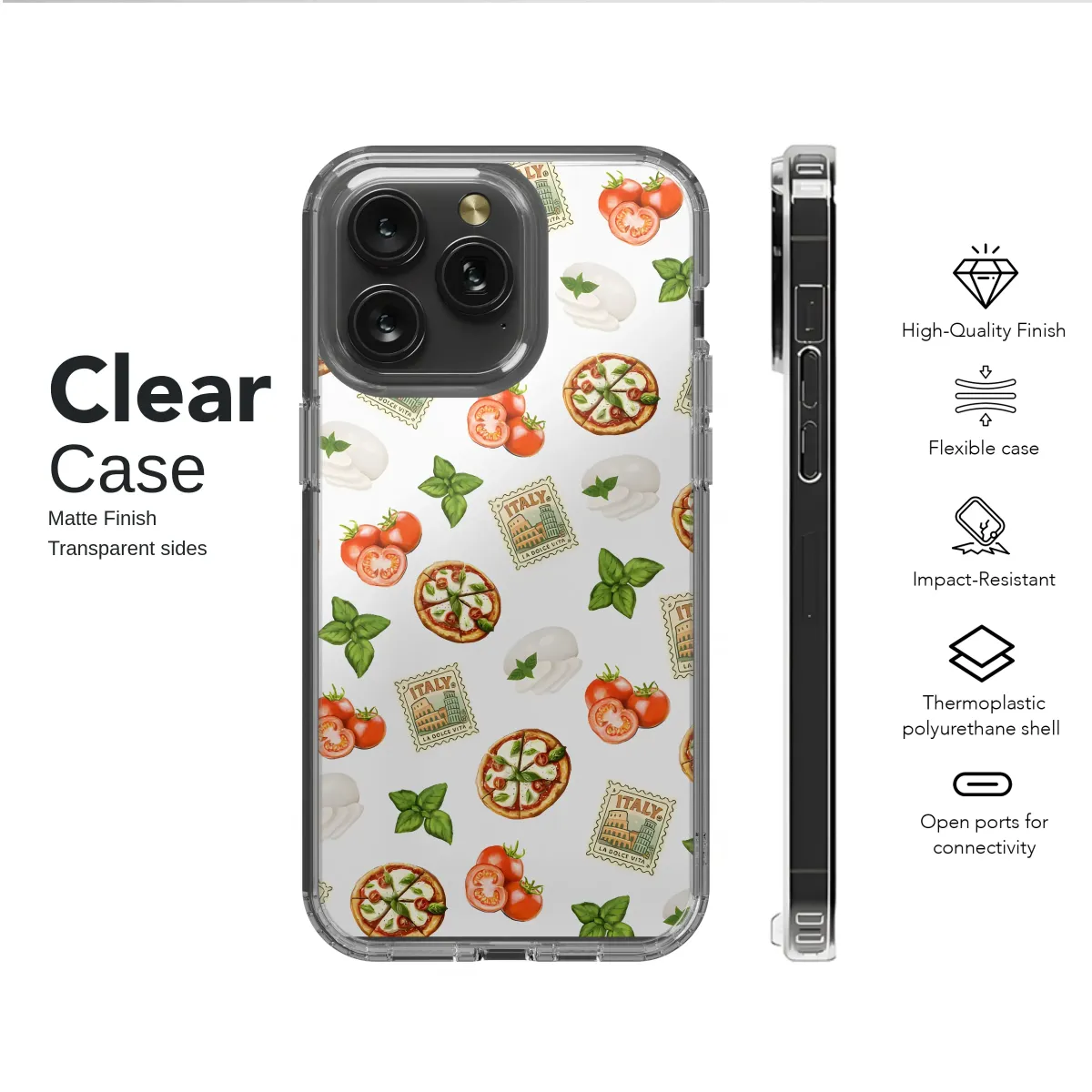 Clear Clear La Dolce Vita Italian Foodie Illustrated Pattern Phone Case Cover for iPhone 17 Pro Max 16 15 13 Samsung S25 S24 Pixel 9358