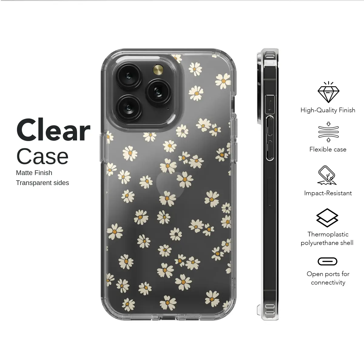 Clear Clear Minimalist Daisy Pattern Cute Botanical Wildflower Design Phone Case Cover for iPhone 17 Pro Max 16 15 13 Samsung S26 S25 Pixel 9761