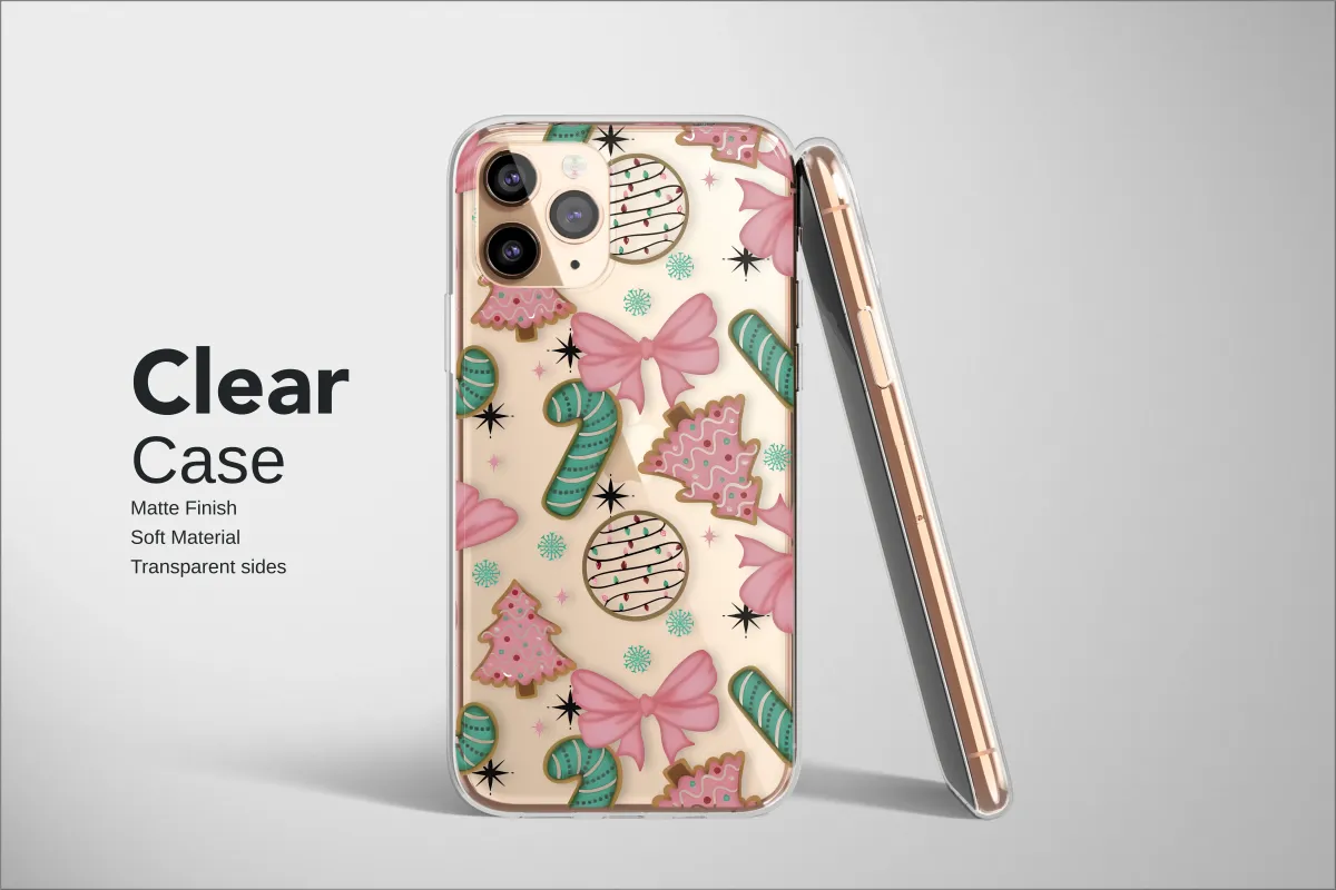 Clear Clear Pastel Christmas Cookie Gingerbread Pattern Phone Case Cover for iPhone 17 Pro Max 16 15 13 Samsung S25 S24 Pixel 8231