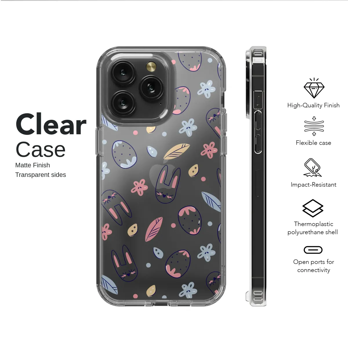 Clear Clear Pastel Easter Bunny and Egg Doodle Phone Case Cover for iPhone 17 Pro Max 16 15 Plus 14 13 Mini Samsung S26 S25 Google Pixel 10 9 9699