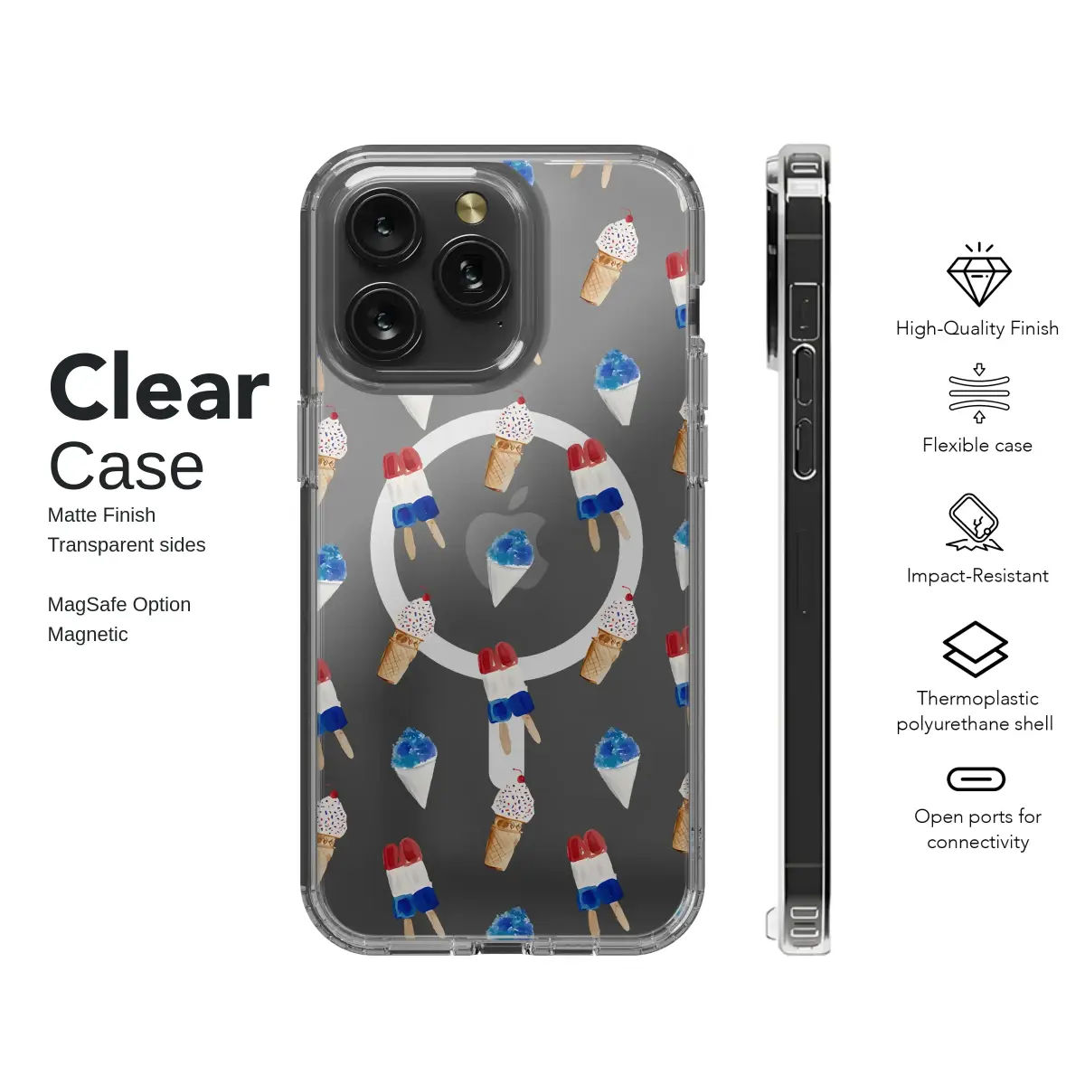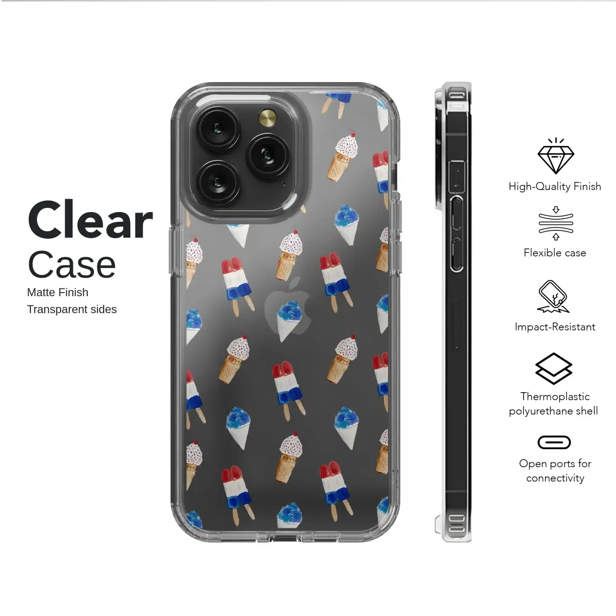 Clear Clear Patriotic Ice Cream Popsicle Watercolor Art Phone Case Cover for iPhone 17 Pro Max 16 15 13 Samsung S26 S25 Pixel 9874