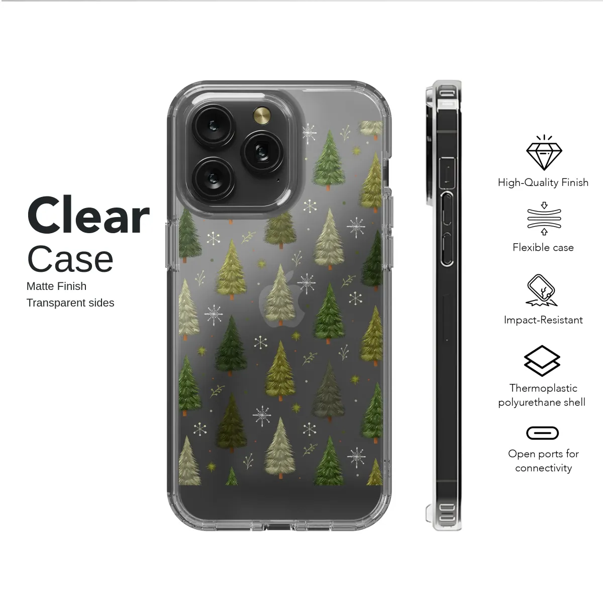Clear Clear Pixelated Winter Forest Pine Tree Snowflake Design Phone Case Cover for iPhone 17 Pro Max 16 15 13 Samsung S25 S24 Pixel 8455
