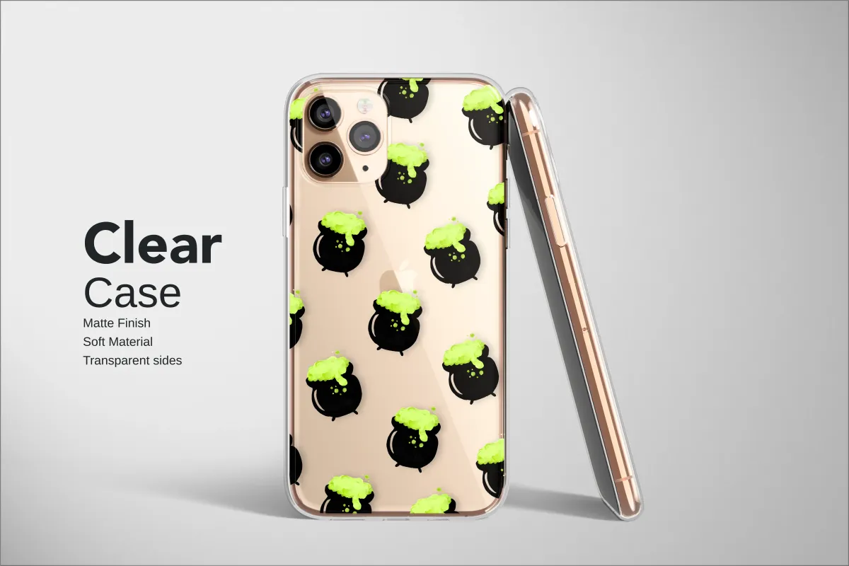 Clear Clear Spooky Witch Cauldron Green Potion Pattern Phone Case Cover for iPhone 17 Pro Max 16 15 13 Samsung S25 S24 Pixel 9335
