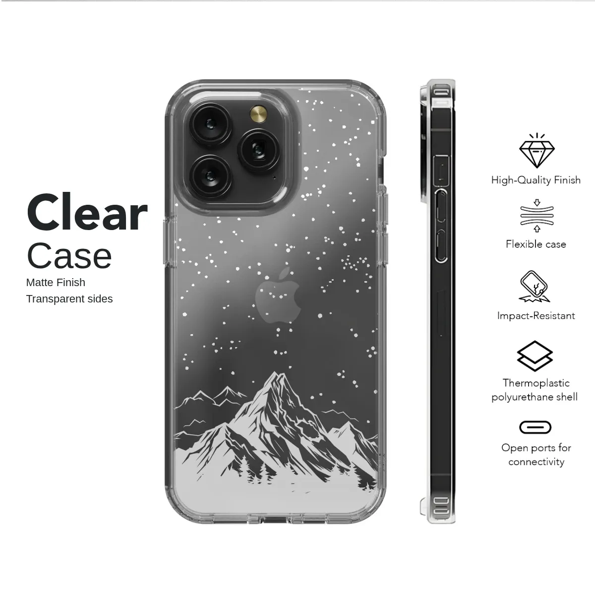 Clear Clear Starry Night Mountain Range Graphic Phone Case Cover for iPhone 17 Pro Max 16 15 Plus 14 13 Mini Samsung S25 S24 Pixel 10 9 8250