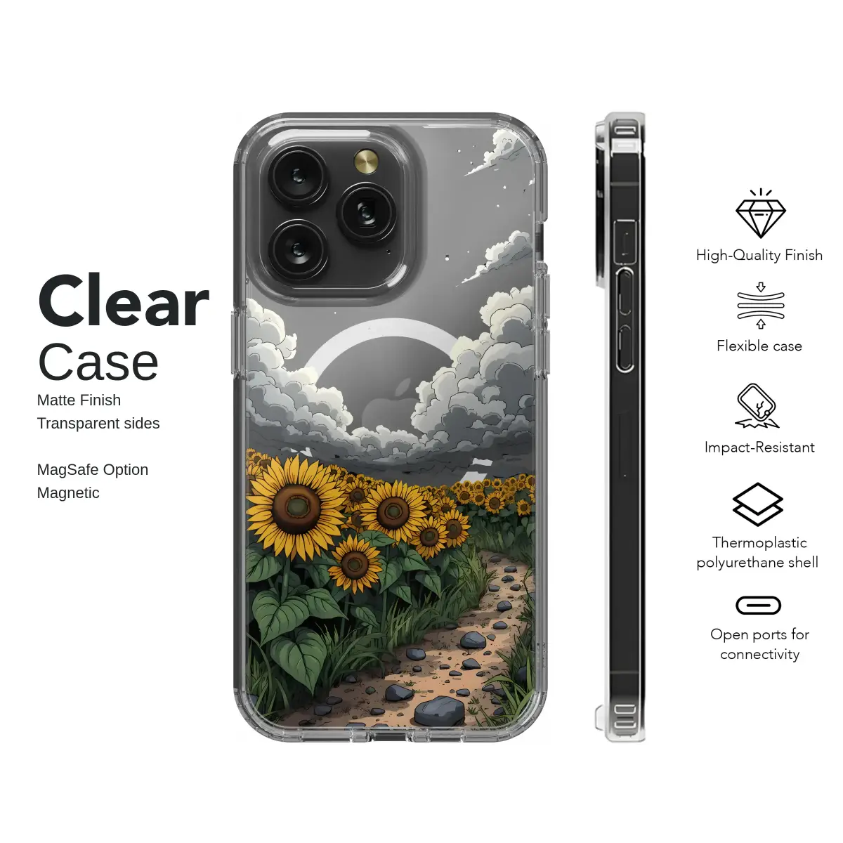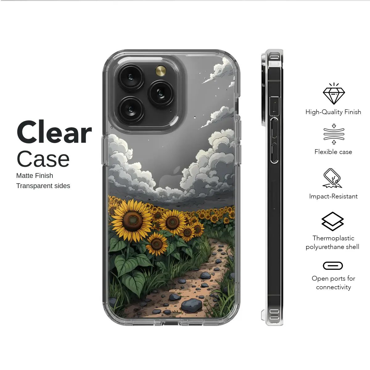 Clear Clear Sunflower Field Path Illustration Floral Nature Art Phone Case Cover for iPhone 17 Pro Max 16 15 13 Samsung S26 S25 Pixel 9994