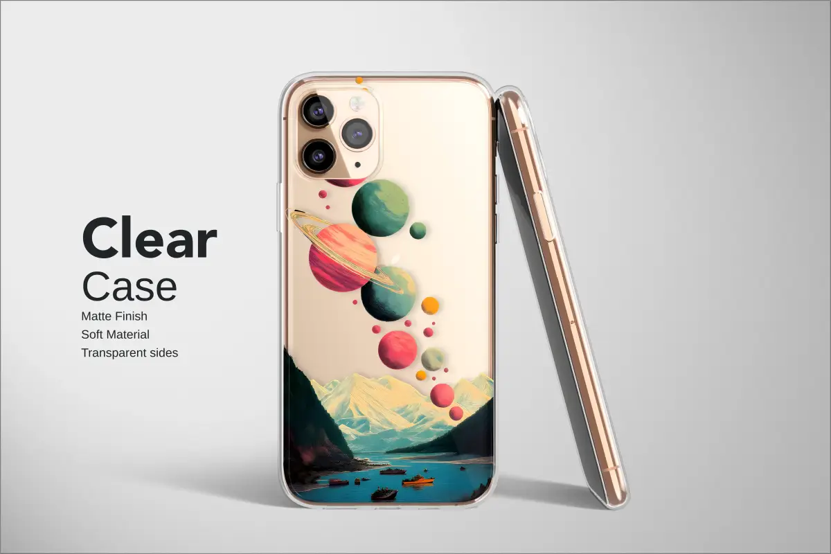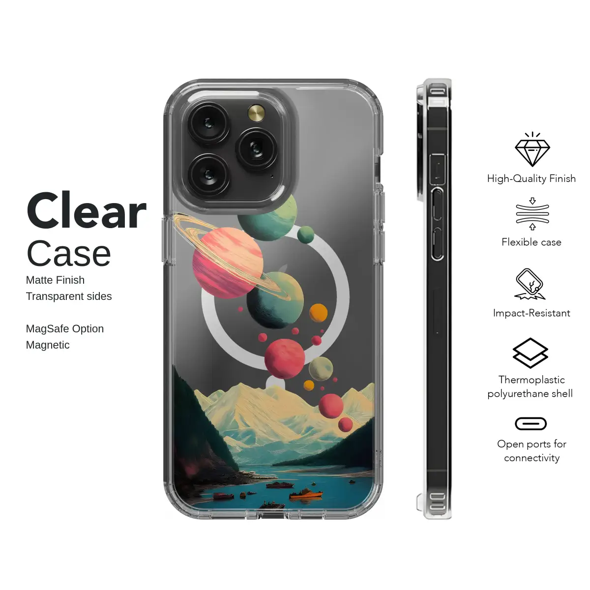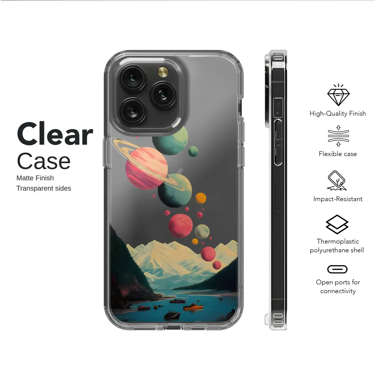 Clear Clear Surreal Planets Over Mountain Lake Artistic Cover Phone Case Cover for iPhone 17 Pro Max 16 15 13 Samsung S26 S25 Pixel 9992