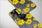 Showcase your style with this striking floral pattern. This design features vibrant yellow poppies with light blue centers, contrasted beautifully against a deep black backdrop. The bold, stylized blue leaves weave through the blossoms, creating a modern and artistic botanical illustration. It's a cheerful and eye-catching print perfect for anyone who loves bold colors and floral art.