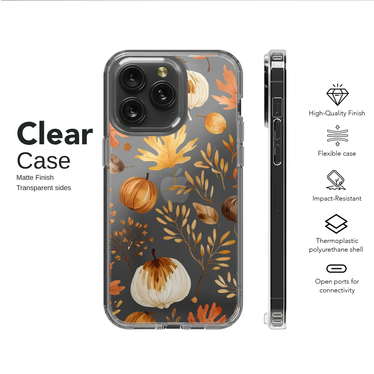 Clear Clear Watercolor Autumn Pumpkins and Leaves Glitch Art Phone Case Cover for iPhone 17 Pro Max 16 15 13 Samsung S25 S24 Pixel 8336