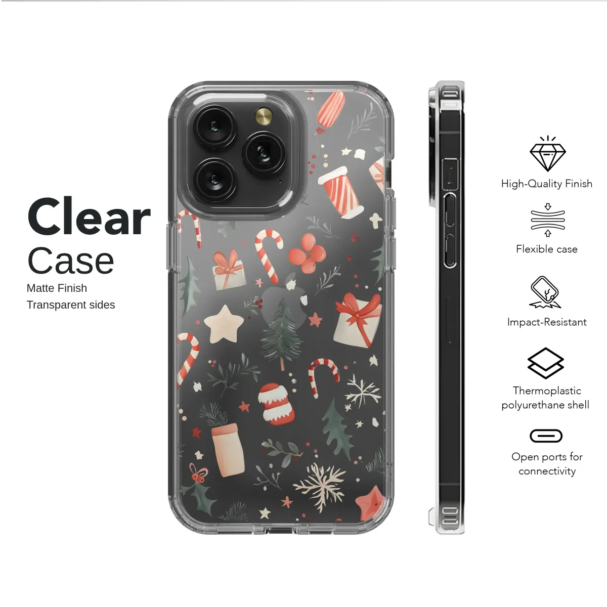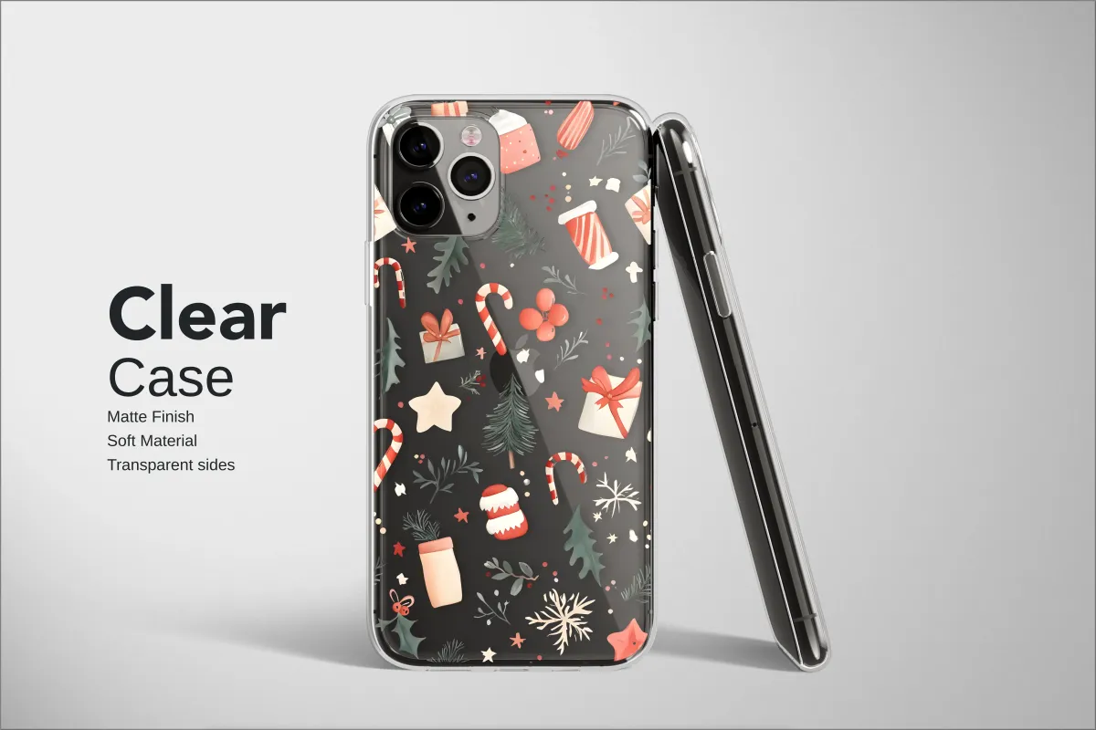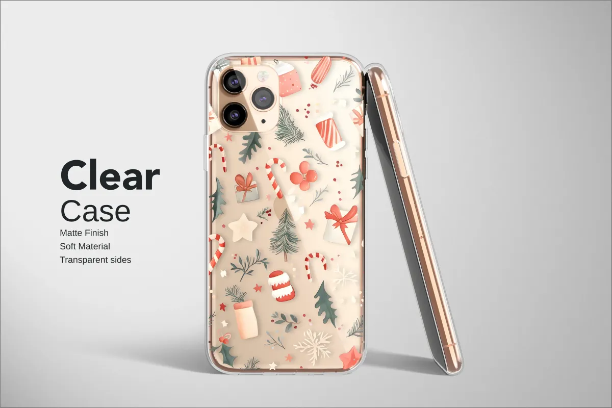 Clear Clear Watercolor Christmas Holiday Festive Pattern Art Phone Case Cover for iPhone 17 Pro Max 16 15 13 Samsung S25 S24 Pixel 8658