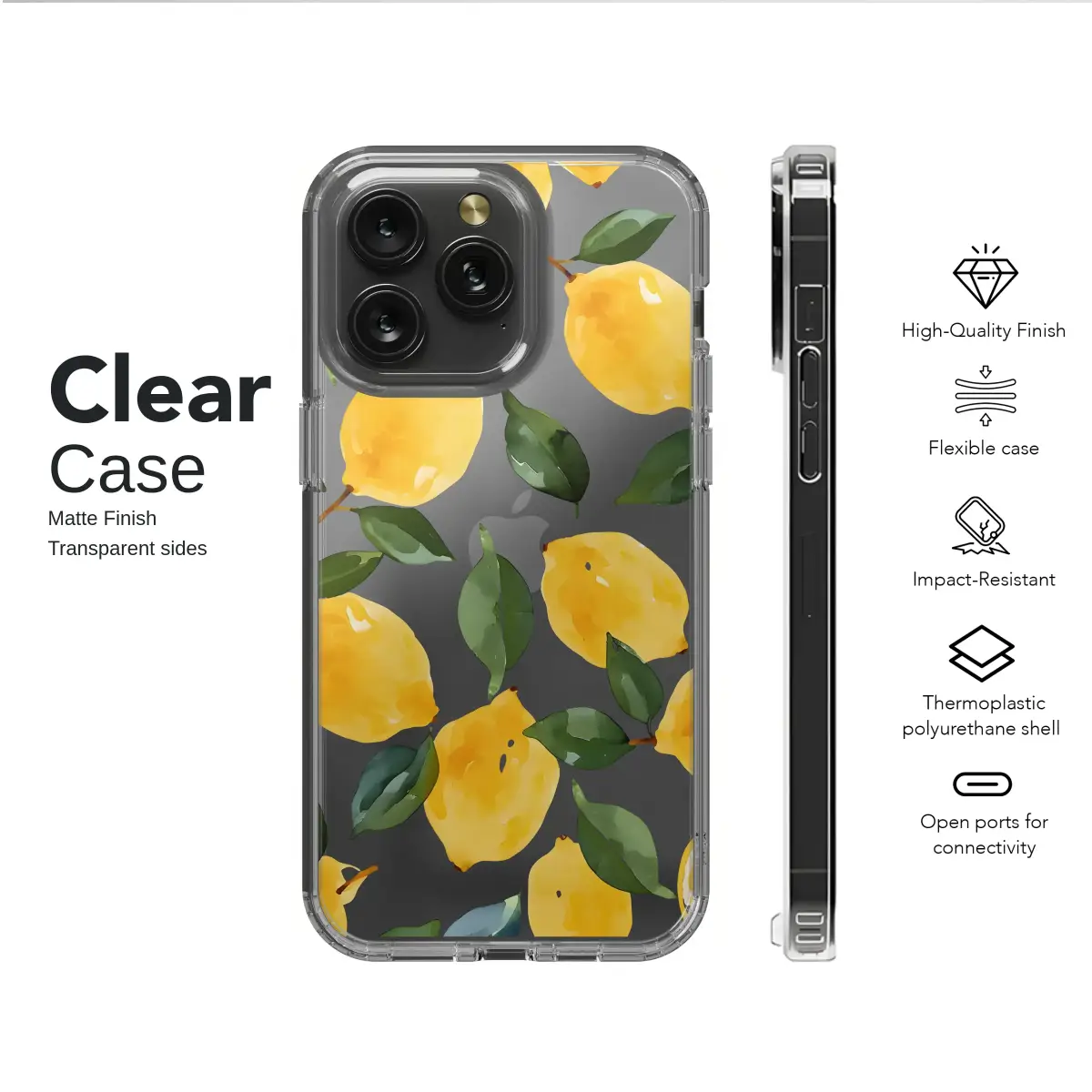 Clear Clear Watercolor Lemon Pattern Botanical Citrus Fruit Print Phone Case Cover for iPhone 17 Pro Max 16 15 13 Samsung S26 S25 Pixel 9875