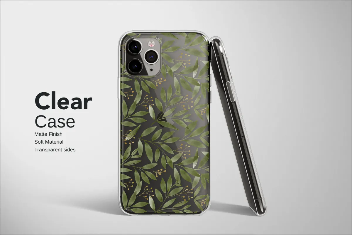 Clear Clear Watercolor Olive Branch with Gold Berries Pattern Phone Case Cover for iPhone 17 Pro Max 16 15 13 Samsung S25 S24 Pixel 9057