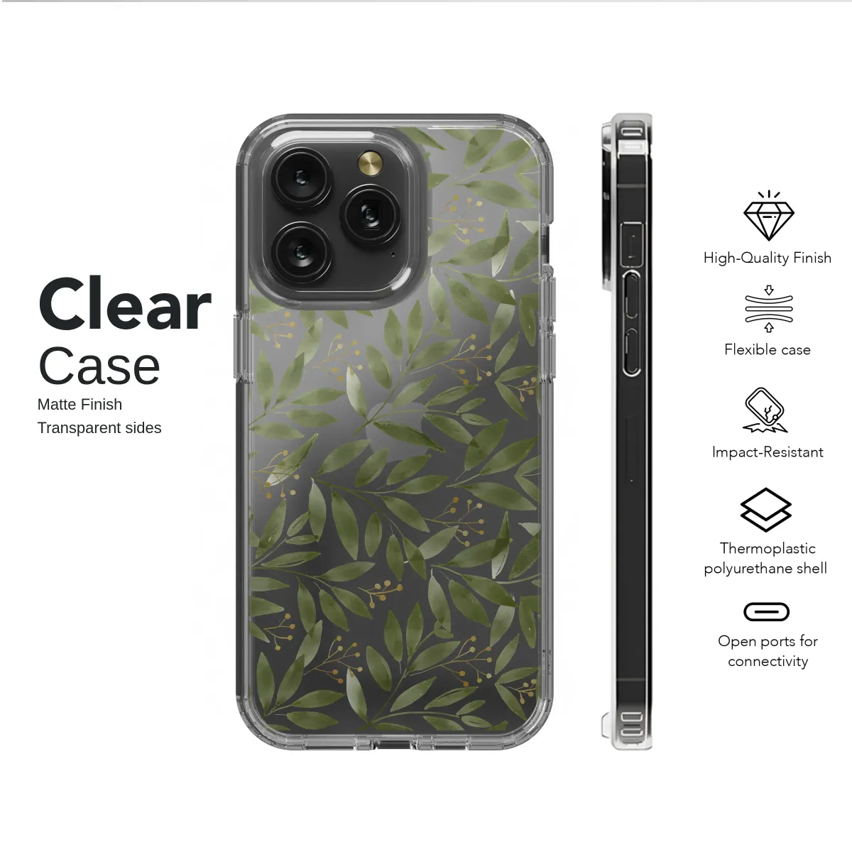 Clear Clear Watercolor Olive Branch with Gold Berries Pattern Phone Case Cover for iPhone 17 Pro Max 16 15 13 Samsung S25 S24 Pixel 9057 - Image 1
