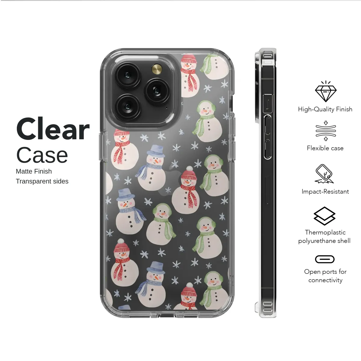 Clear Clear Watercolor Snowman Holiday Snowflake Pattern Phone Case Cover for iPhone 17 Pro Max 16 15 13 Samsung S25 S24 Pixel 8788 - Image 1