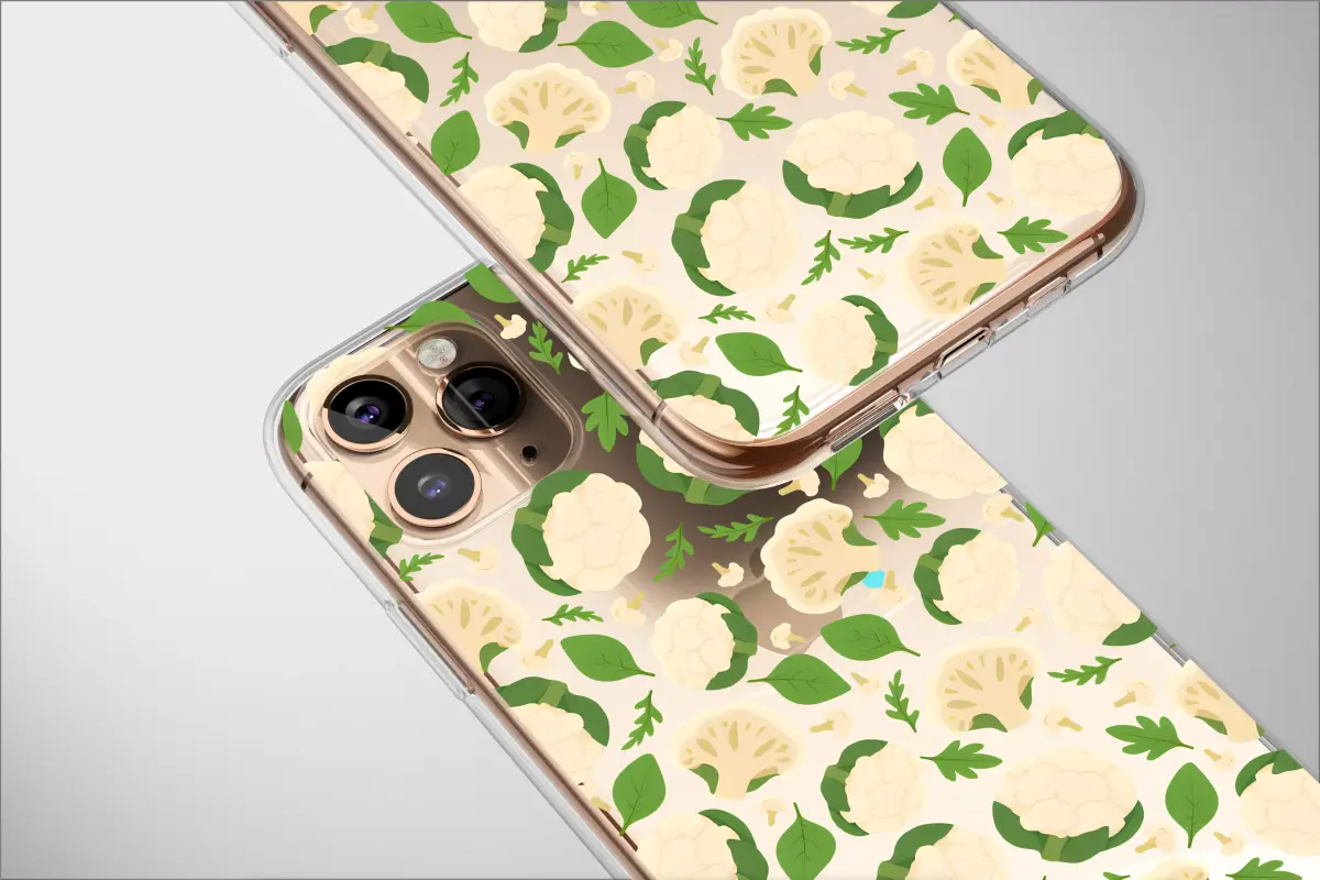 Showcase your love for fresh vegetables with this whimsical cauliflower pattern. The design features beautifully illustrated whole cauliflowers, sliced florets, and scattered green leaves, creating a vibrant, garden-fresh aesthetic. It's a perfect, playful tribute to healthy eating and farmer's market finds.