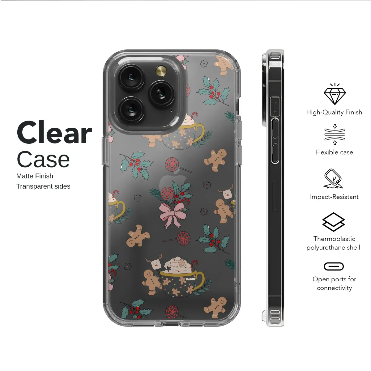 Clear Clear Whimsical Christmas Gingerbread Hot Cocoa Pattern Phone Case Cover for iPhone 17 Pro Max 16 15 13 Samsung S25 S24 Pixel 9106