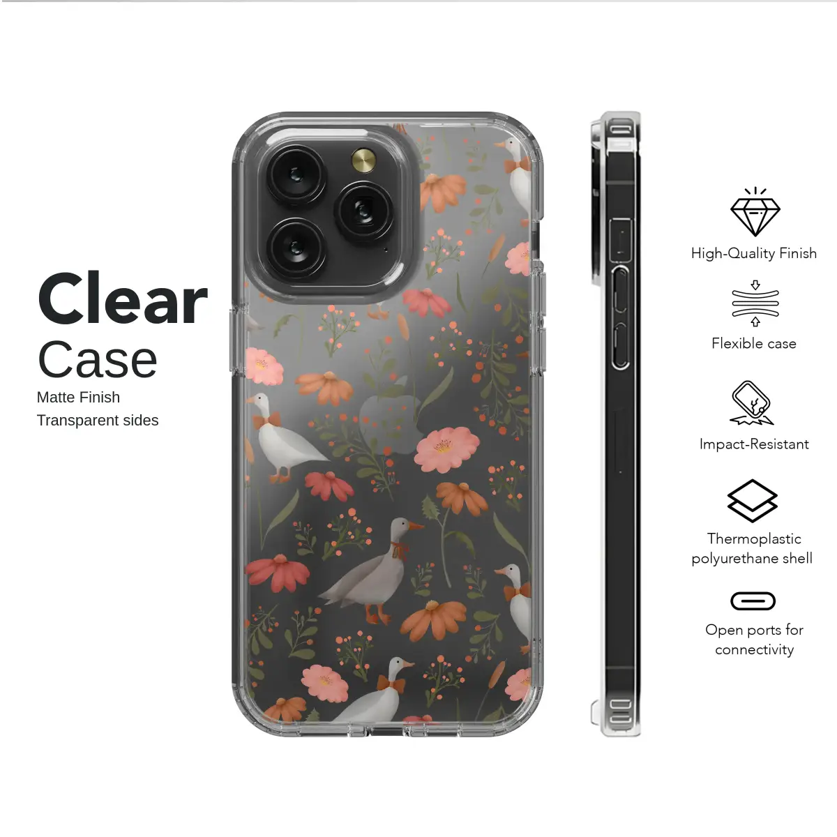 Clear Clear Whimsical Duck and Wildflower Garden Pattern Phone Case Cover for iPhone 17 Pro Max 16 15 13 Samsung S26 S25 Pixel 10060