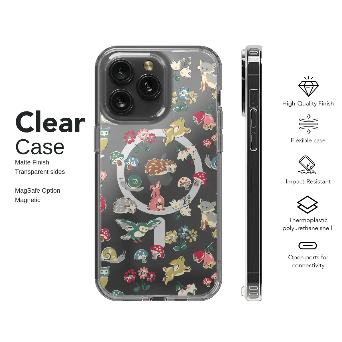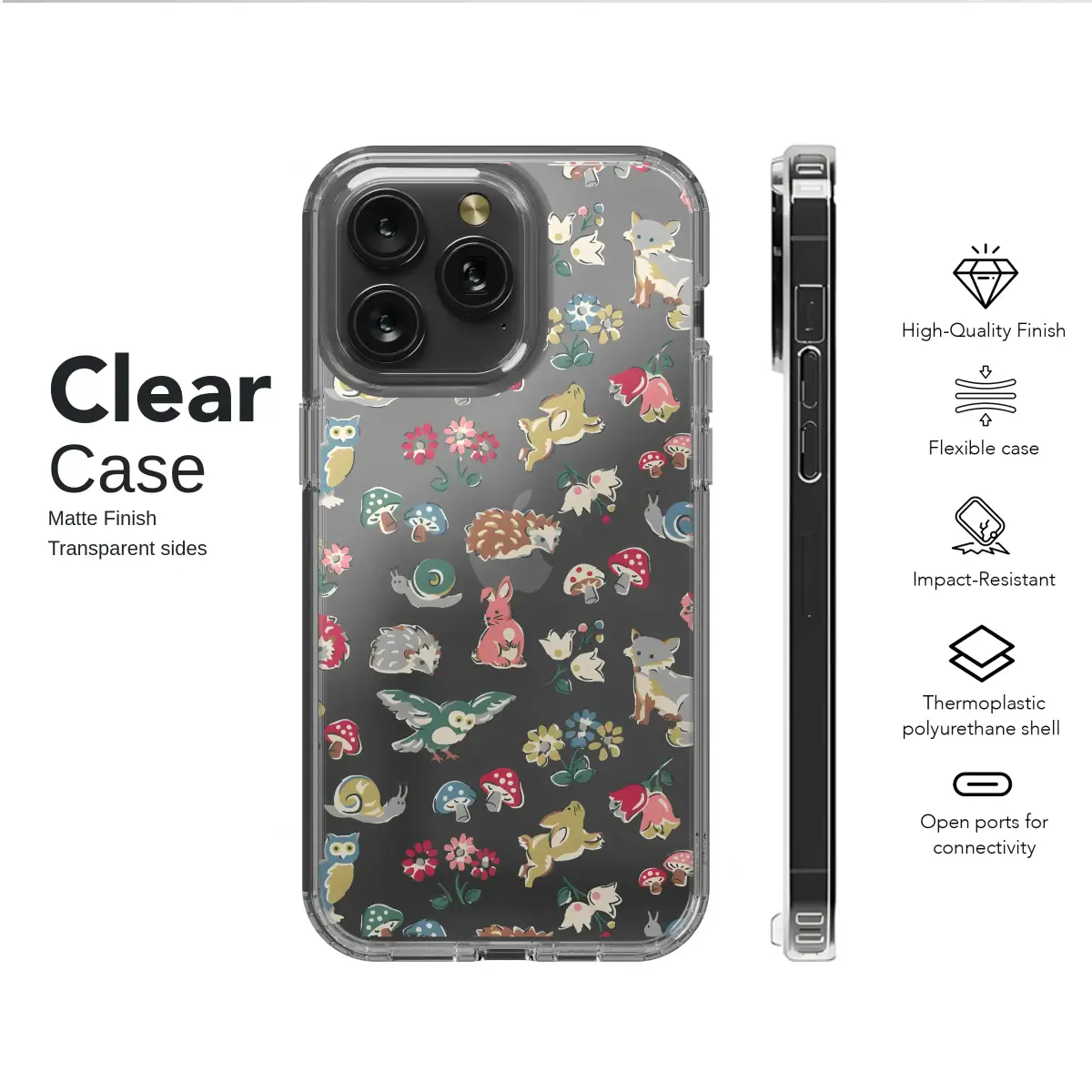 Clear Clear Whimsical Woodland Creature Folk Art Illustration Phone Case Cover for iPhone 17 Pro Max 16 15 13 Samsung S26 S25 Pixel 10054