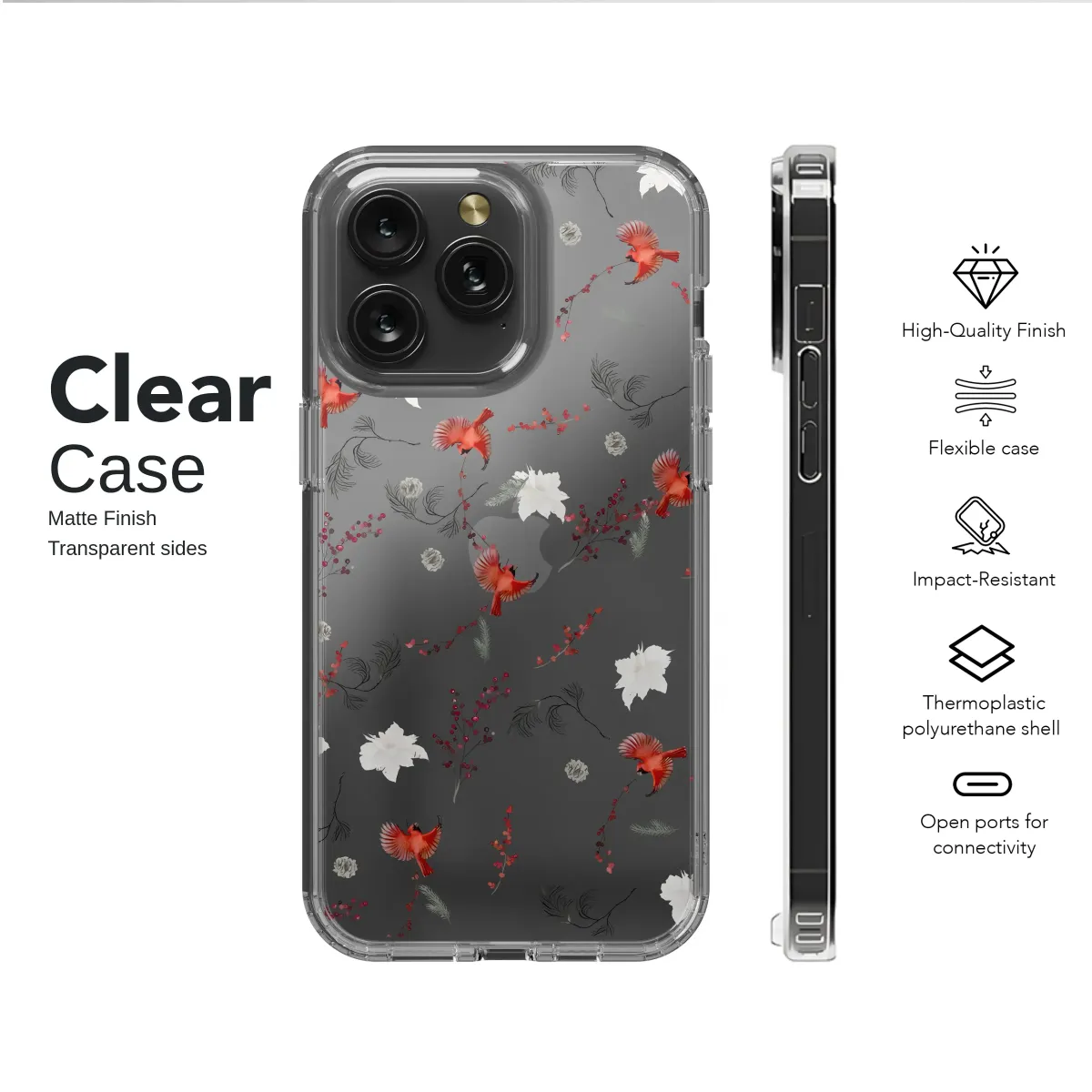 Clear Clear Winter Cardinal Bird Red Berry Pinecone Design Phone Case Cover for iPhone 17 Pro Max 16 15 13 Samsung S25 S24 Pixel 8957 - Image 1