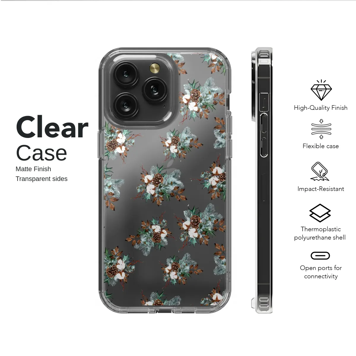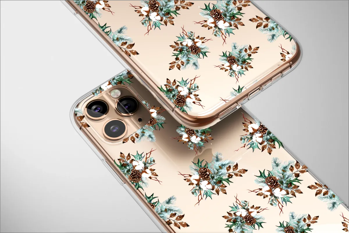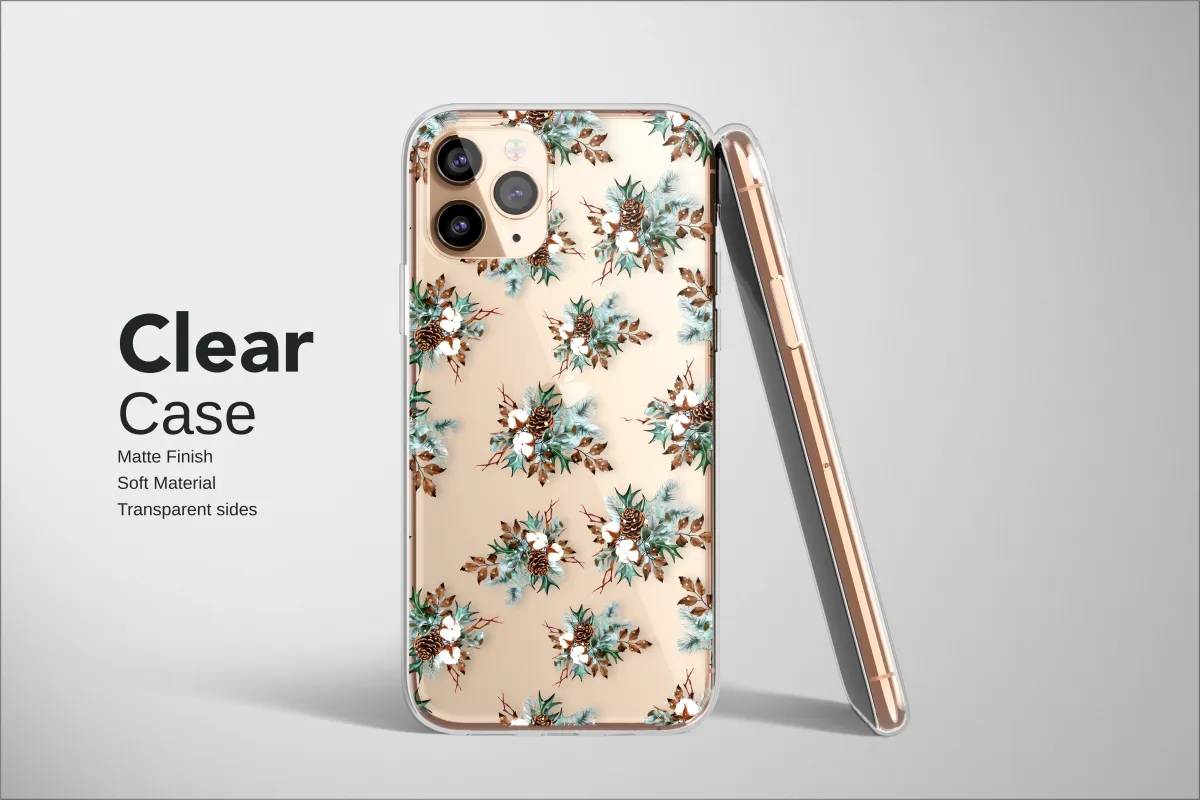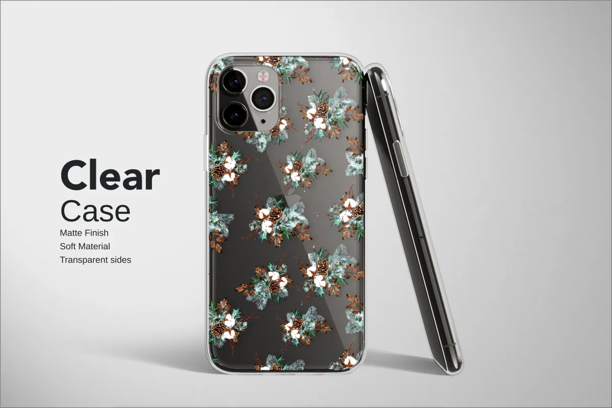 Clear Clear Winter Pinecone and Cotton Botanical on Black Phone Case Cover for iPhone 17 Pro Max 16 15 13 Samsung S25 S24 Pixel 8958