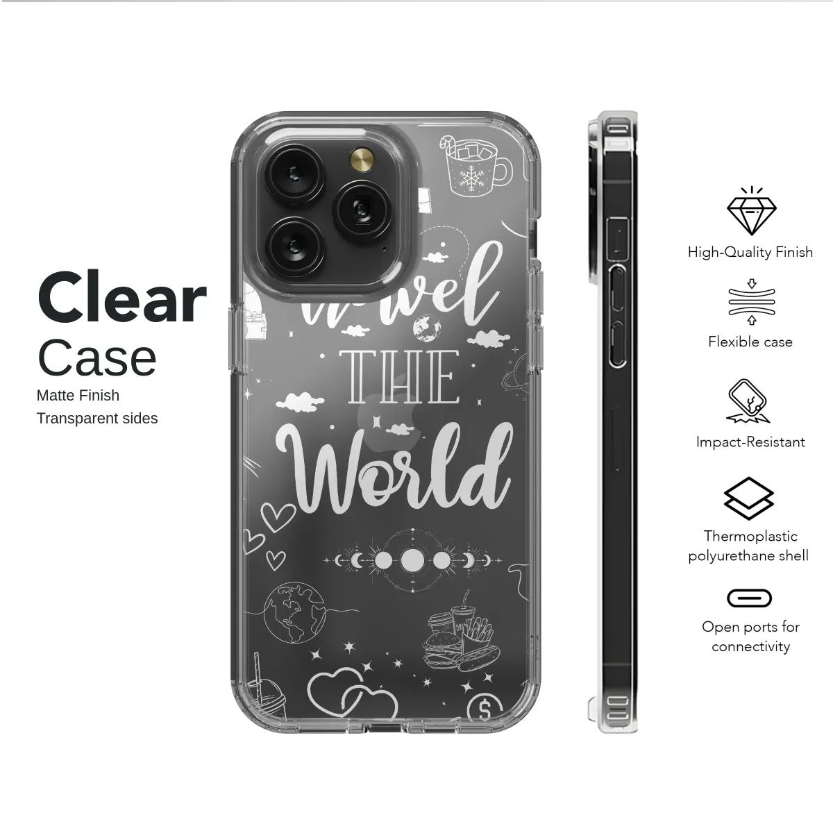 Clear Clear World Travel Doodle Landmark Sketch Art Phone Case Cover for iPhone 17 Pro Max 16 15 Plus 14 13 Mini Samsung S25 S24 Pixel 10 9 8265 - Image 1