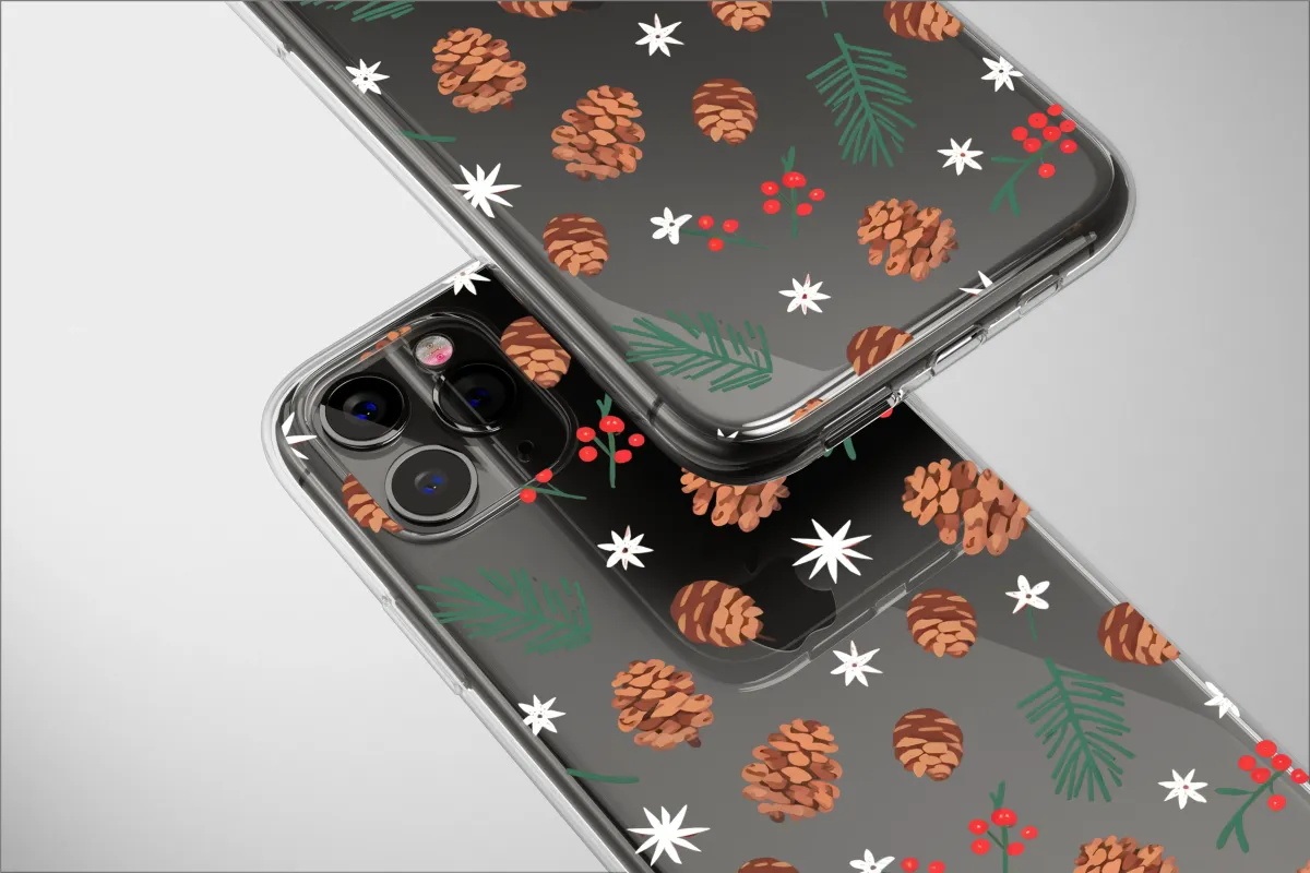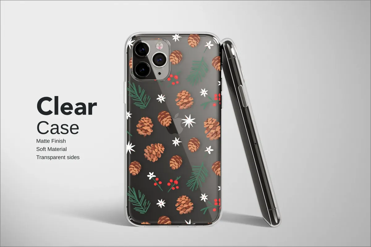 Clear Cozy Pixel Pinecone Holiday Art Phone Case iPhone Samsung Cover Pixel 8091