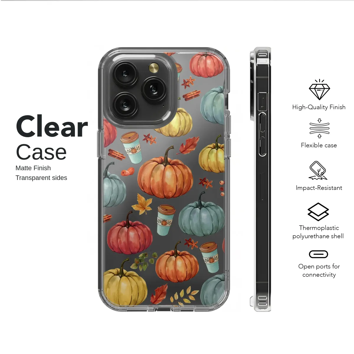 Clear Cozy Pumpkin Spice Autumn Pattern Phone Case iPhone Samsung Cover Pixel 7948