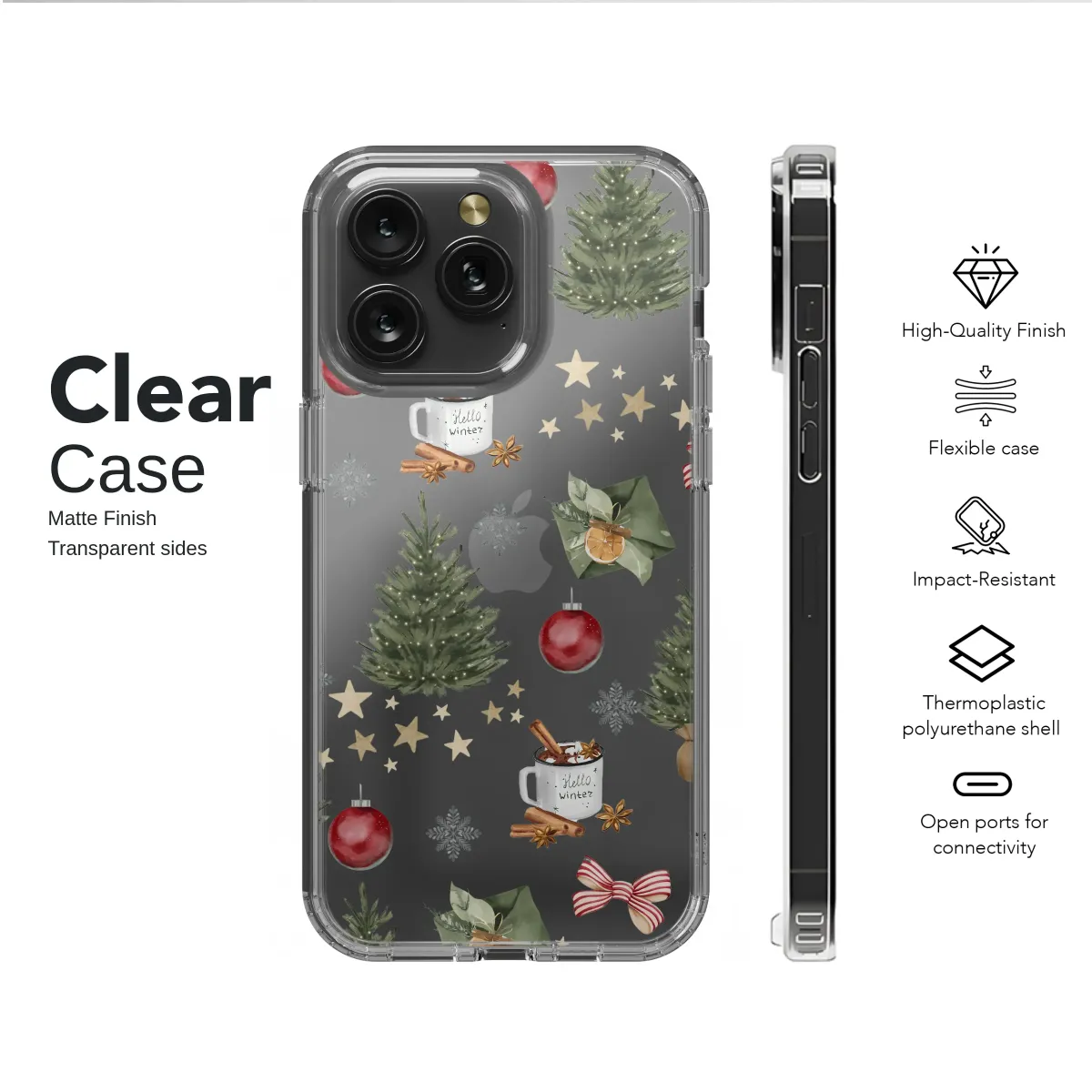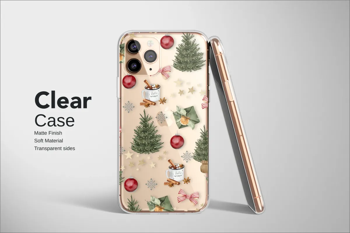 Clear Cozy Winter Christmas Watercolor Art Phone Case iPhone Samsung Cover Pixel 8066