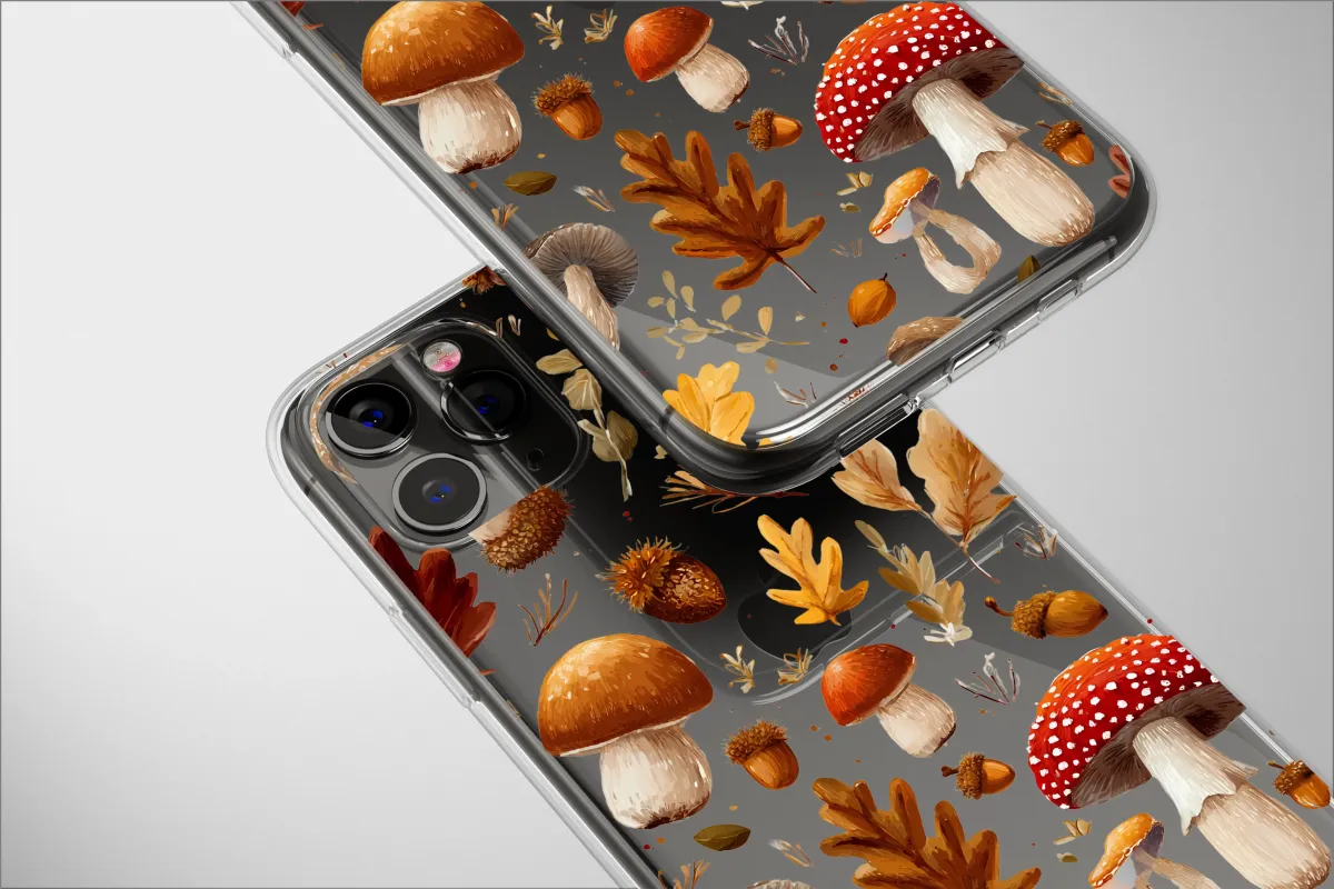 Step into an enchanted woodland every time you reach for your device. This captivating design captures the very essence of a crisp autumn day, bringing the forest floor to your fingertips. A whimsical gathering of hand-painted style mushrooms—from the iconic red and white amanita to the earthy porcini—tumbles across a deep, dark background, creating a stunning contrast. They are joined by a scattering of autumn's treasures: golden oak leaves, rich crimson foliage, and tiny, perfect acorns just waiting to be discovered. This isn't just a pattern; it's a feeling. It’s the cozy warmth of a sweater, the earthy scent of damp soil after rain, and the quiet magic of a walk through the woods. Perfect for the nature lover, the foraging enthusiast, or anyone who finds beauty in the wild, this design brings a touch of cottagecore charm and dark academia elegance to your daily essentials. It’s a wonderful gift for a friend with a goblincore heart or a treat for yourself, a daily reminder of nature's quiet, intricate beauty. Let this little piece of the enchanted forest protect your most-used accessory and carry the spirit of the harvest season with you wherever you go.
