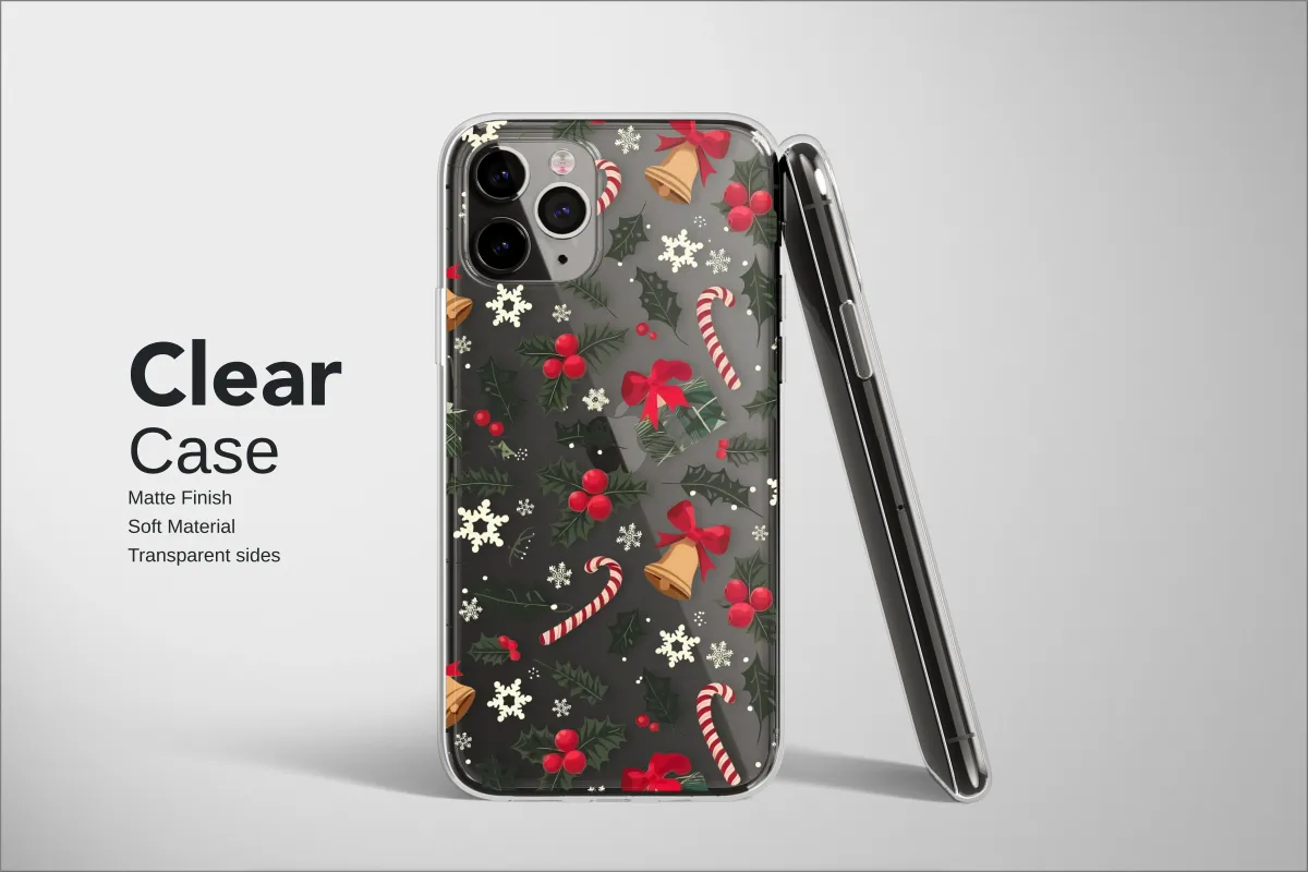 Clear Festive Bells and Holly Art Phone Case iPhone Samsung Cover Pixel 8068