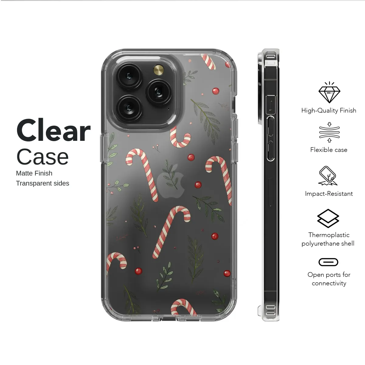 Clear Festive Holiday Peppermint & Holly Phone Case iPhone Samsung Cover Pixel 8090
