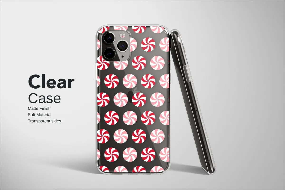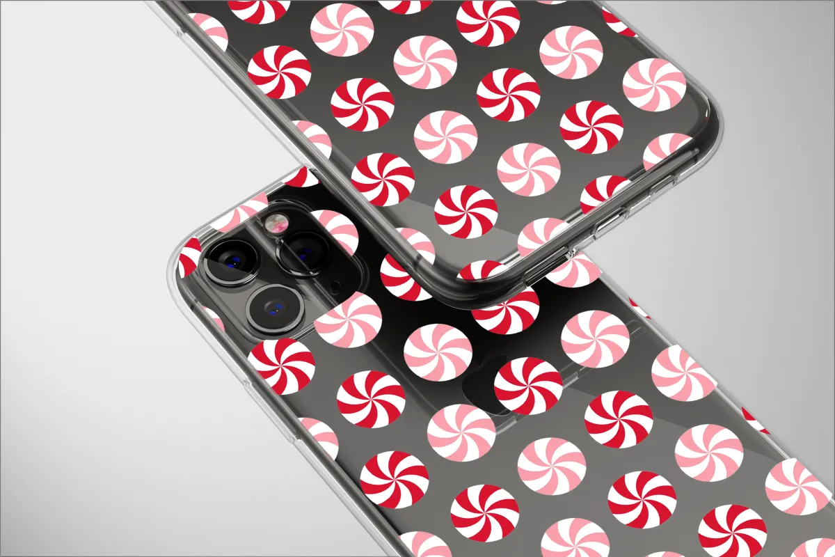 Clear Festive Peppermint Candy Swirls Phone Case iPhone Samsung Cover Pixel 8083