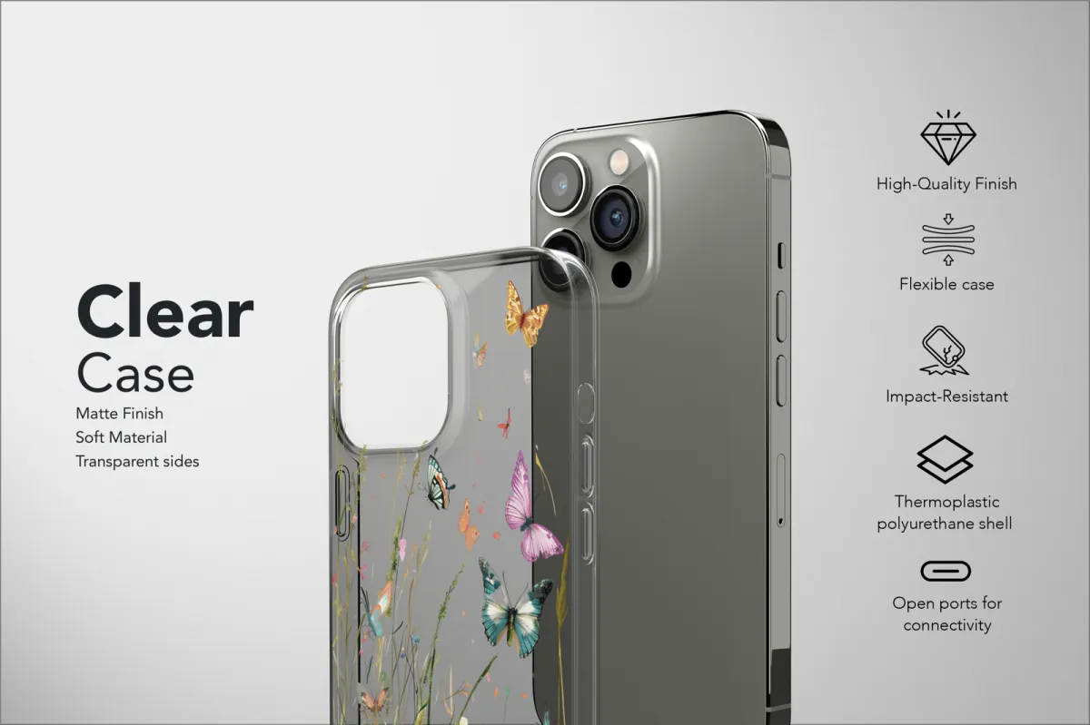 Embrace nature with our Clear Flower Butterfly Phone Case. This minimalist design features delicate flowers and a graceful butterfly, providing a touch of wild beauty while keeping your phone protected. Made from durable TPU, this slim case offers excellent protection and supports wireless charging. Perfect for those who love nature and elegant designs, it's available for various phone models. Add a touch of minimalist wild charm to your phone today!