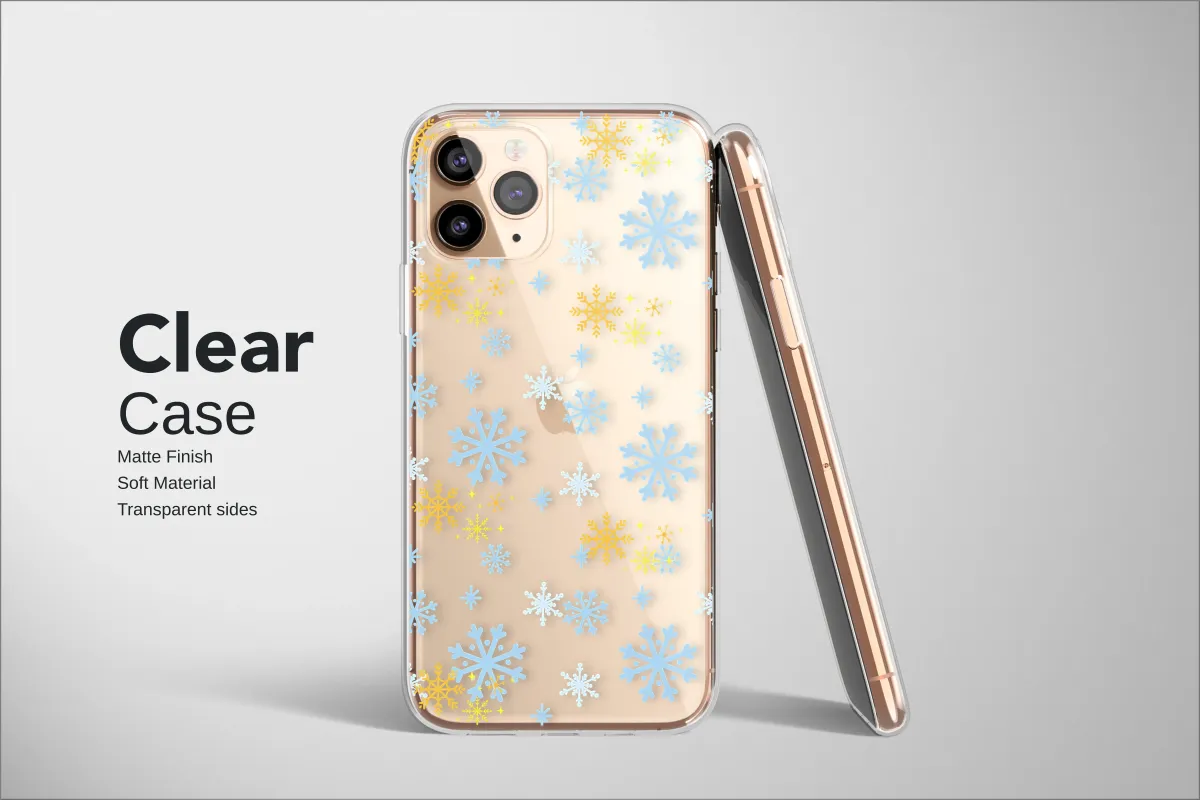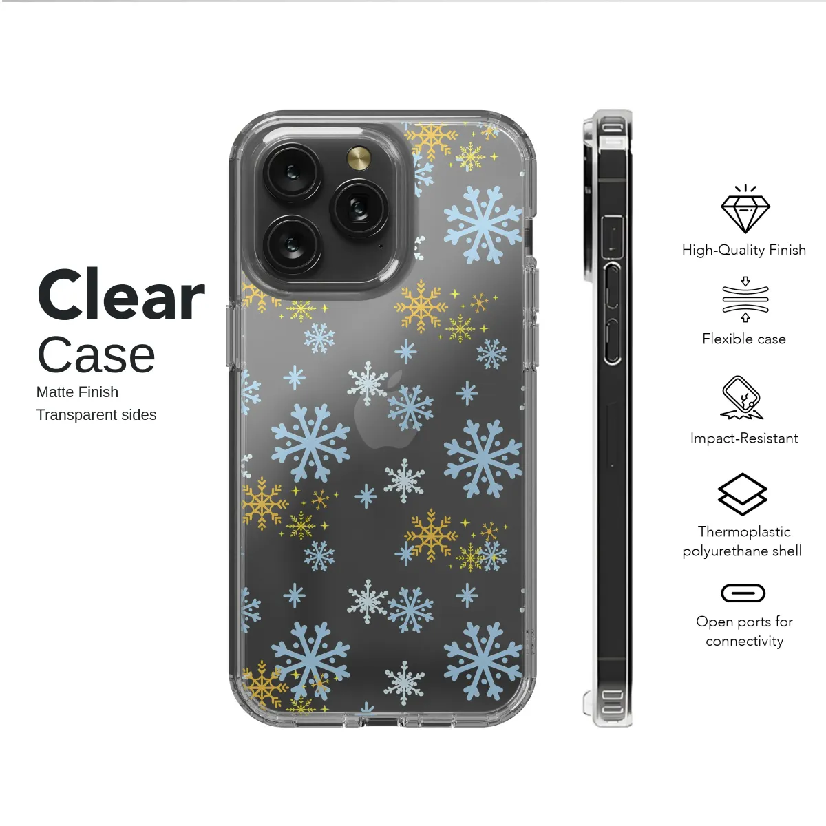 Clear Golden Midnight Snowflake Flurry Phone Case iPhone Samsung Cover Pixel 8009 - Image 1