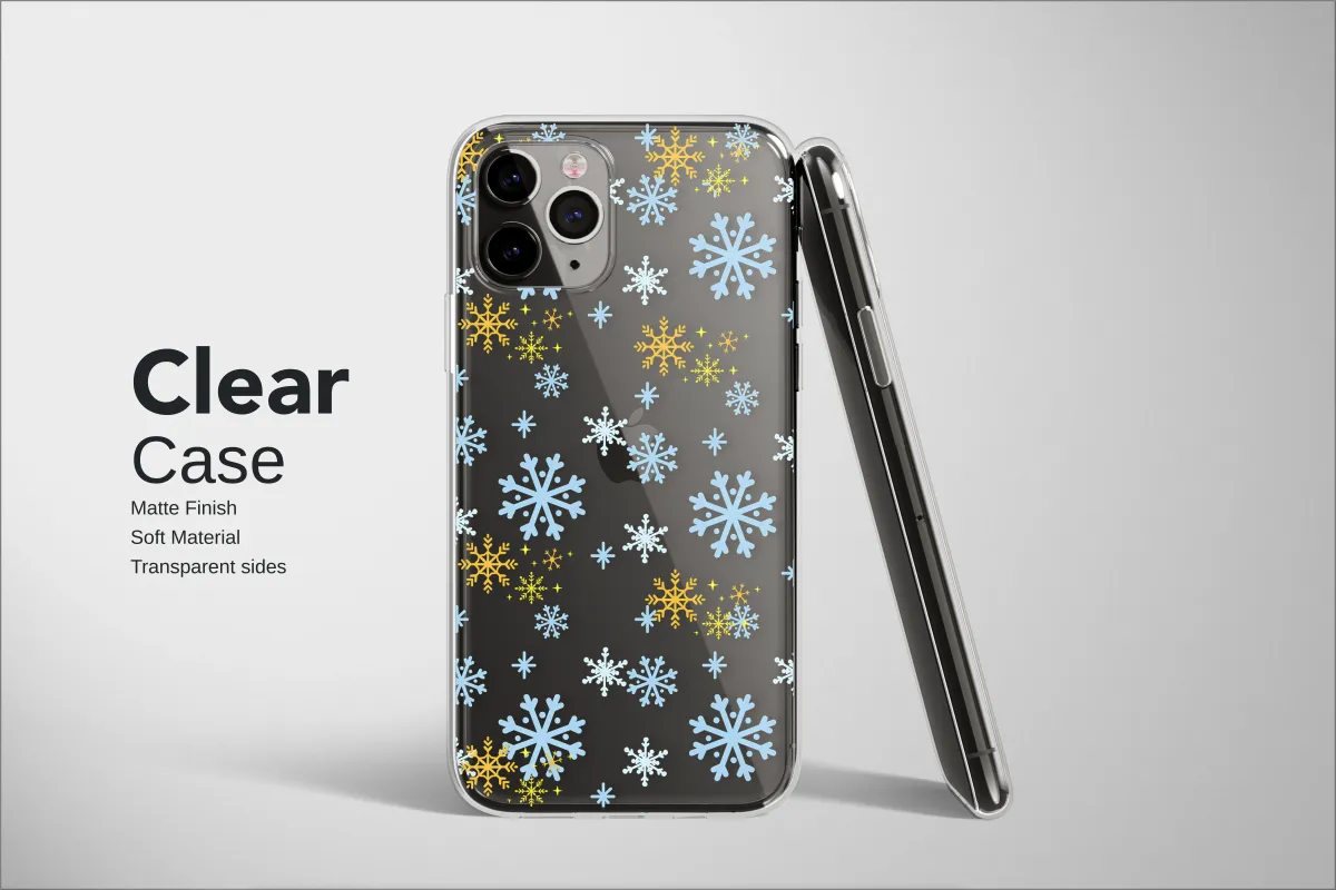 Clear Golden Midnight Snowflake Flurry Phone Case iPhone Samsung Cover Pixel 8009