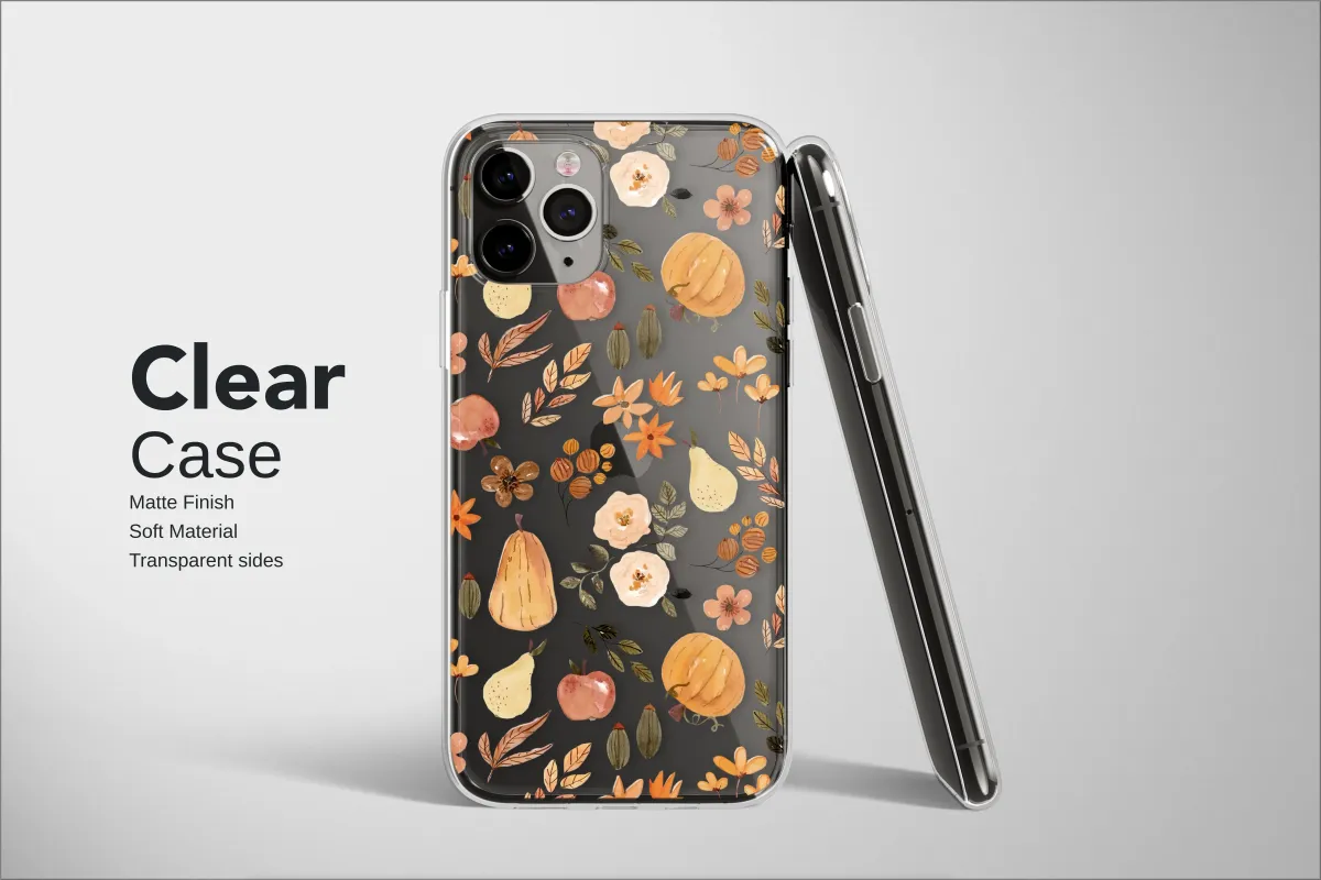 Clear Midnight Autumn Harvest Watercolor Phone Case iPhone Samsung Cover Pixel 7951