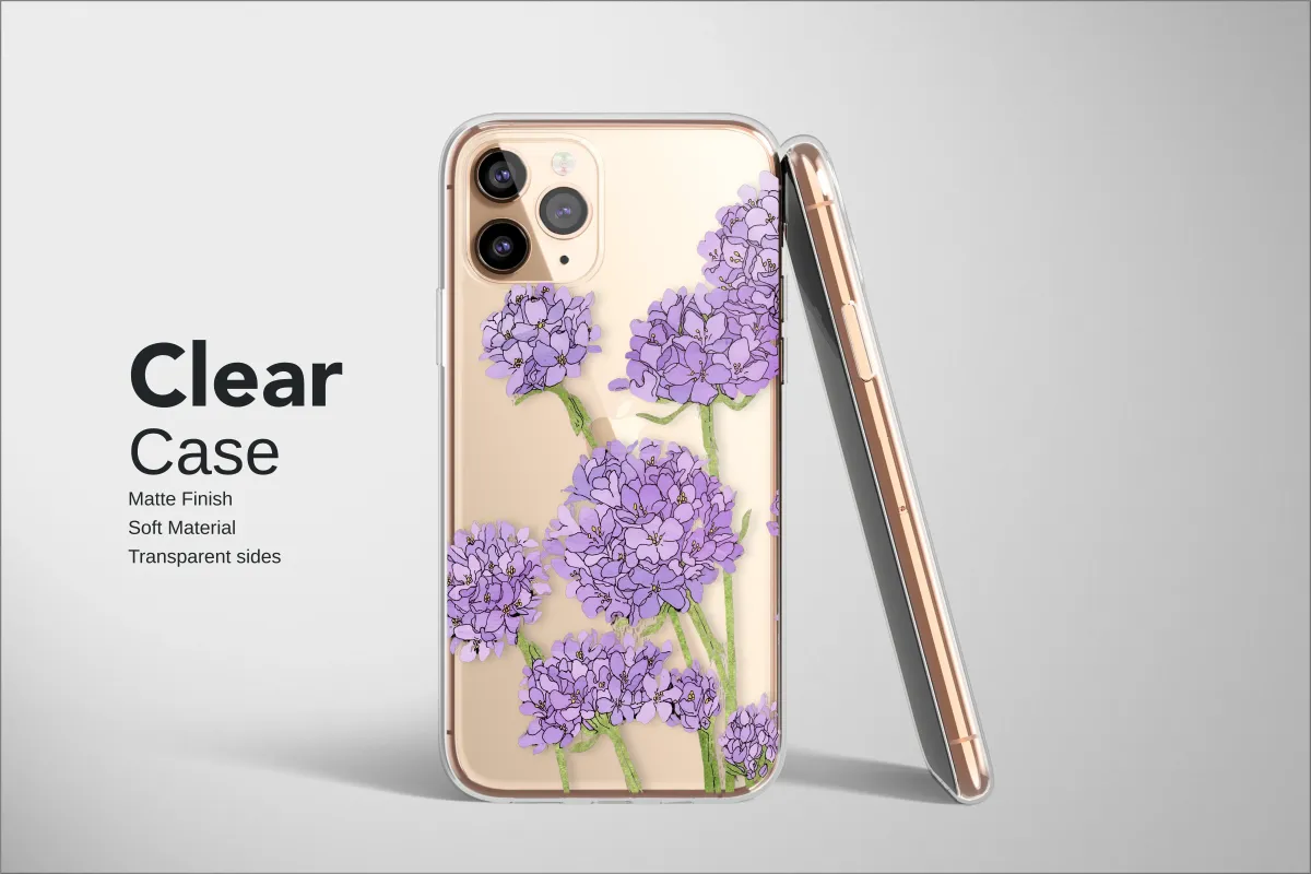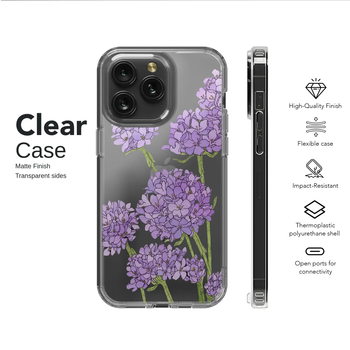 Clear Midnight Lilac Garden Floral Art Phone Case iPhone Samsung Cover Pixel 8014