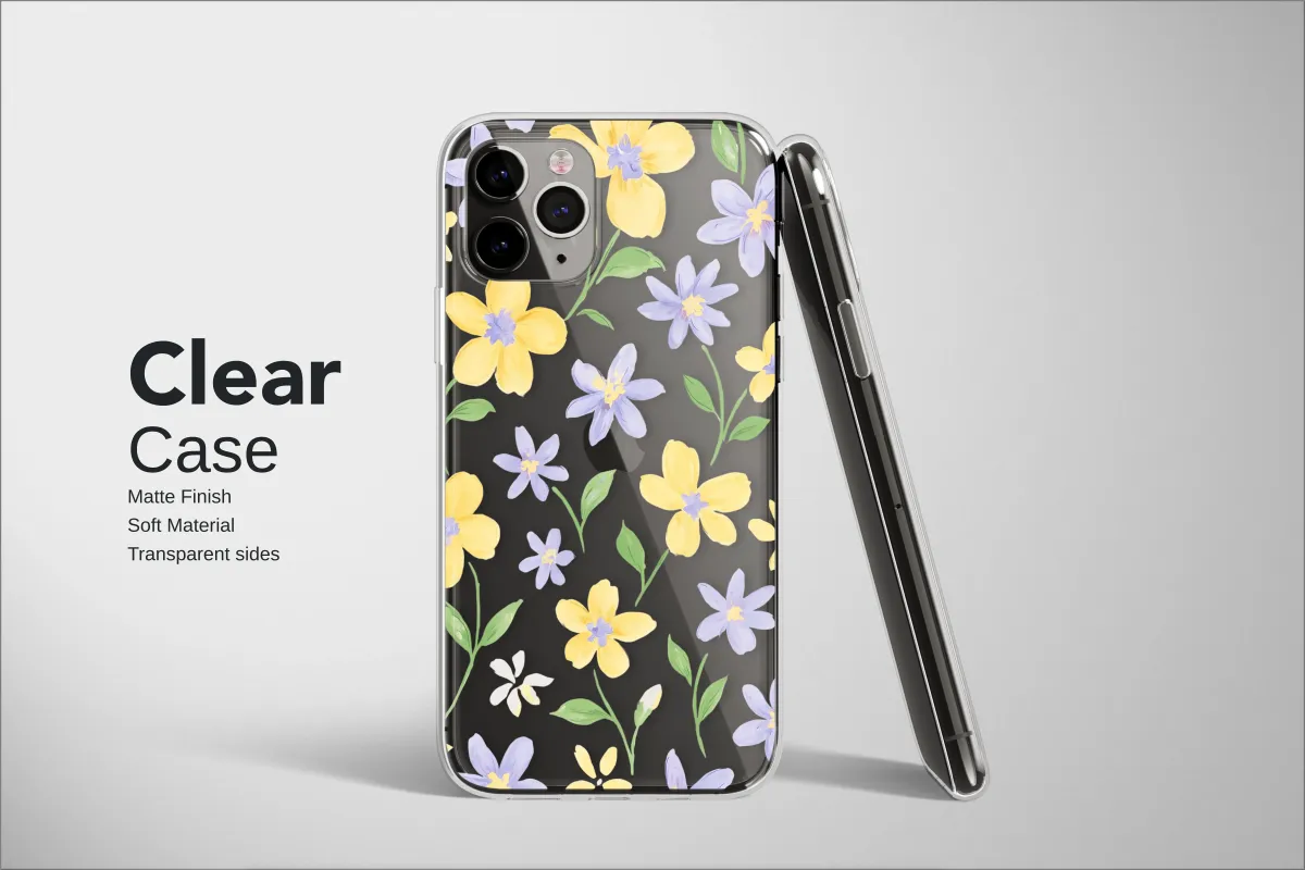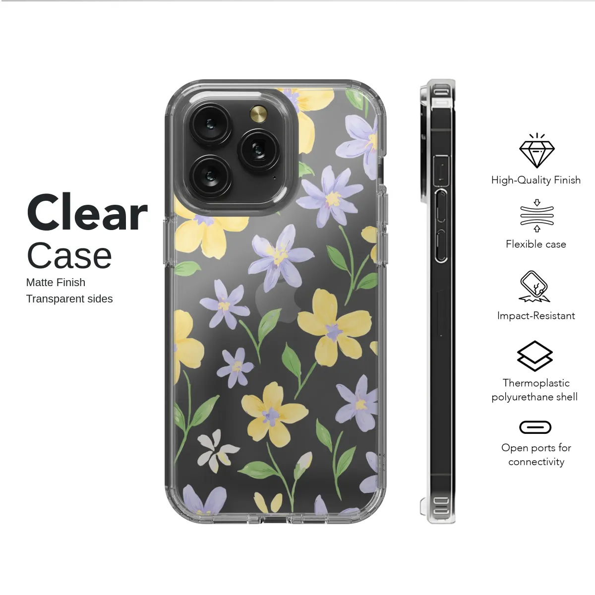 Clear Pastel Wildflower Garden Art Phone Case iPhone Samsung Cover Pixel 7953
