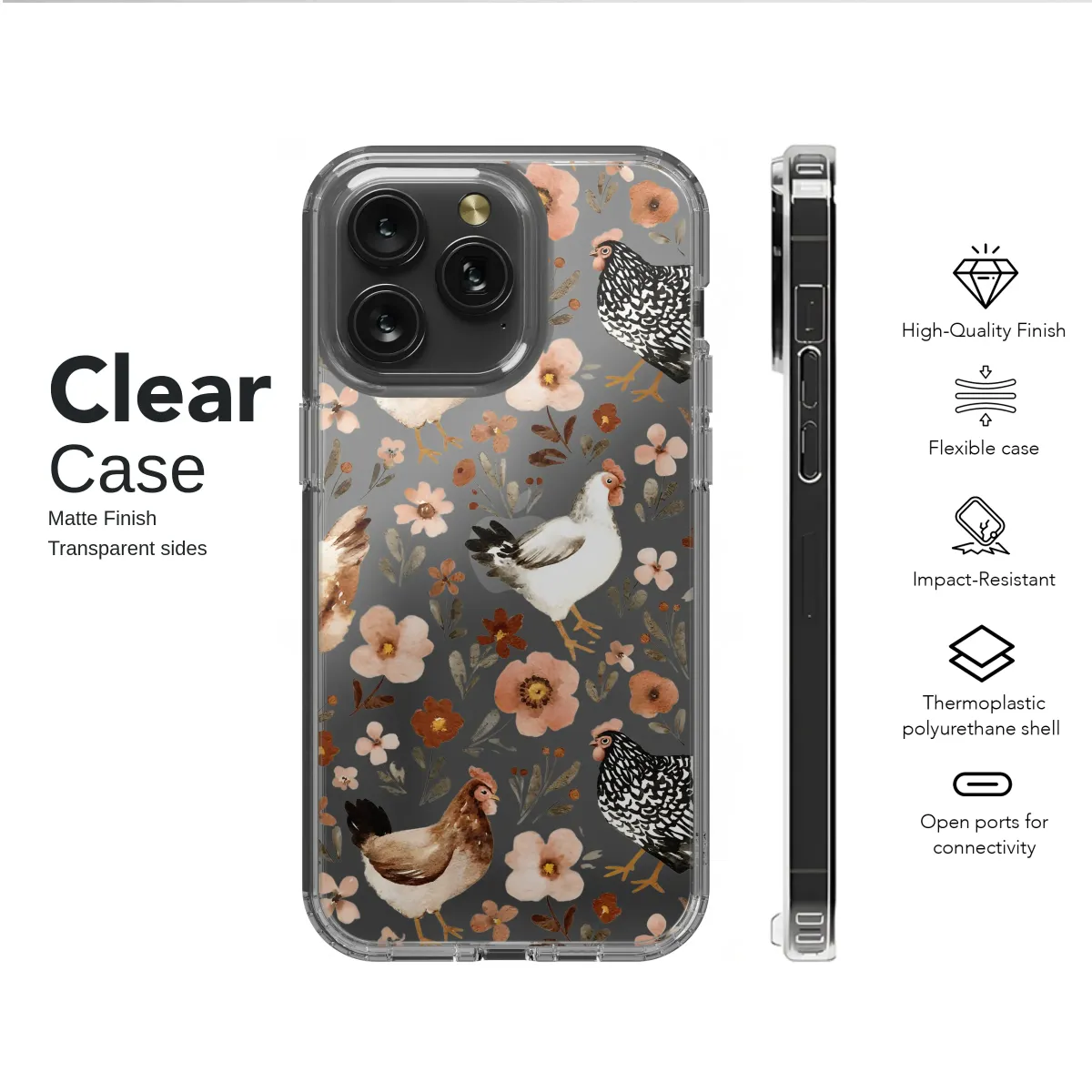 Clear Rustic Farmhouse Chicken Floral Art Phone Case iPhone Samsung Cover Pixel 7975
