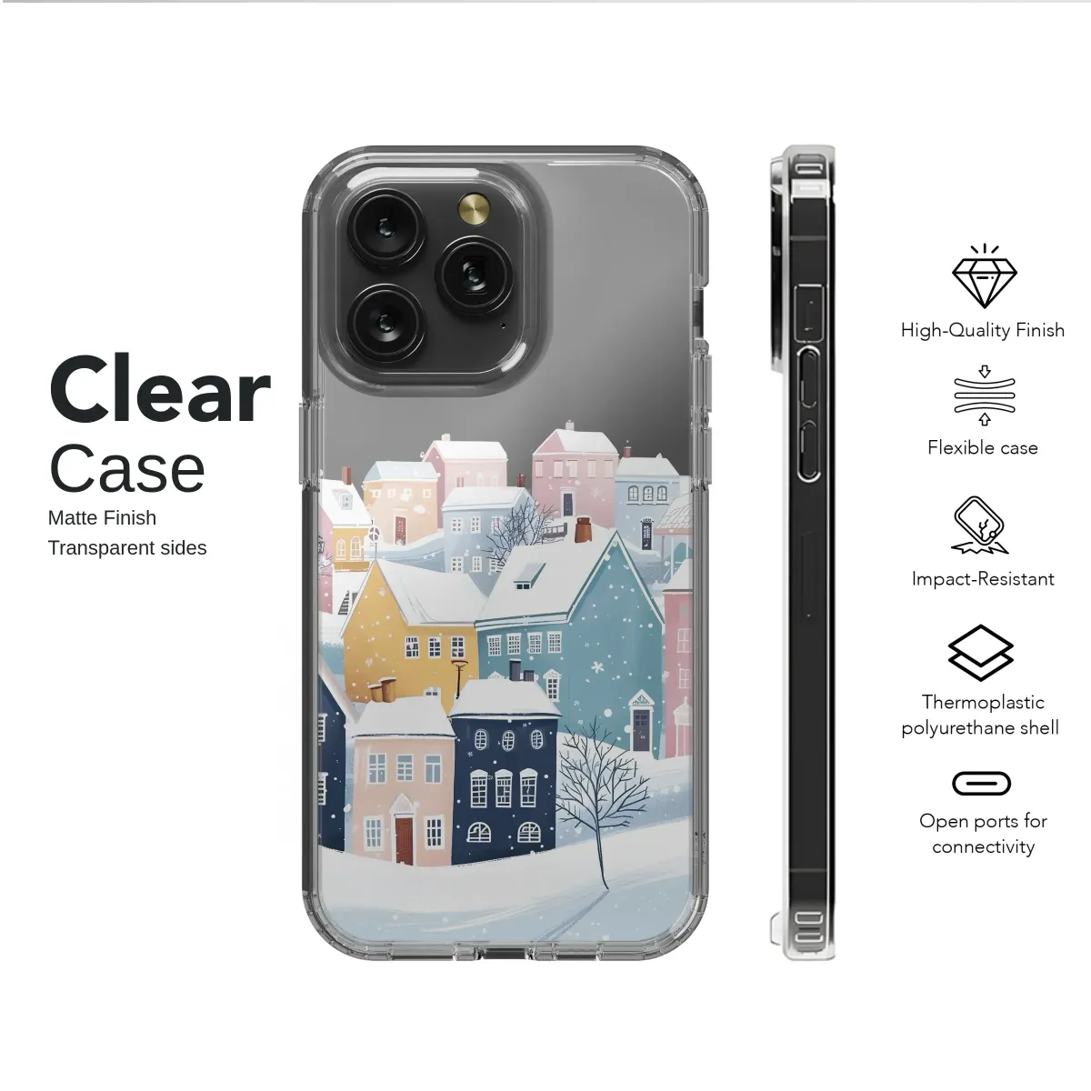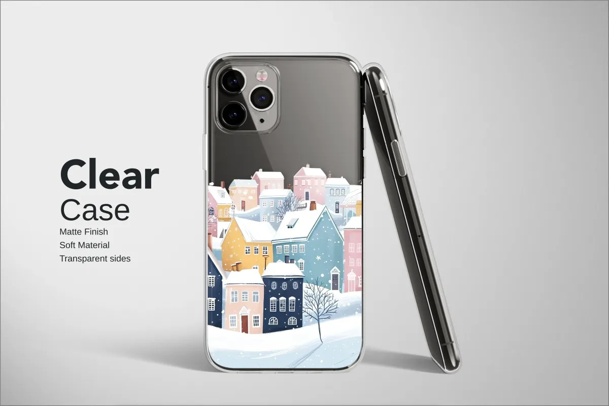 Clear Snowy Scandinavian Village Art Phone Case iPhone Samsung Cover Pixel 8125