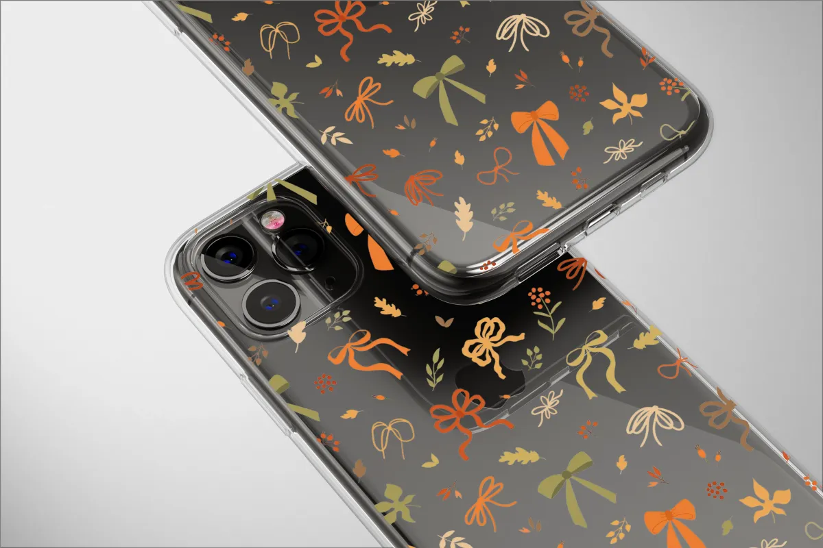Clear Whimsical Autumn Bows and Foliage Phone Case iPhone Samsung Cover Pixel 7959