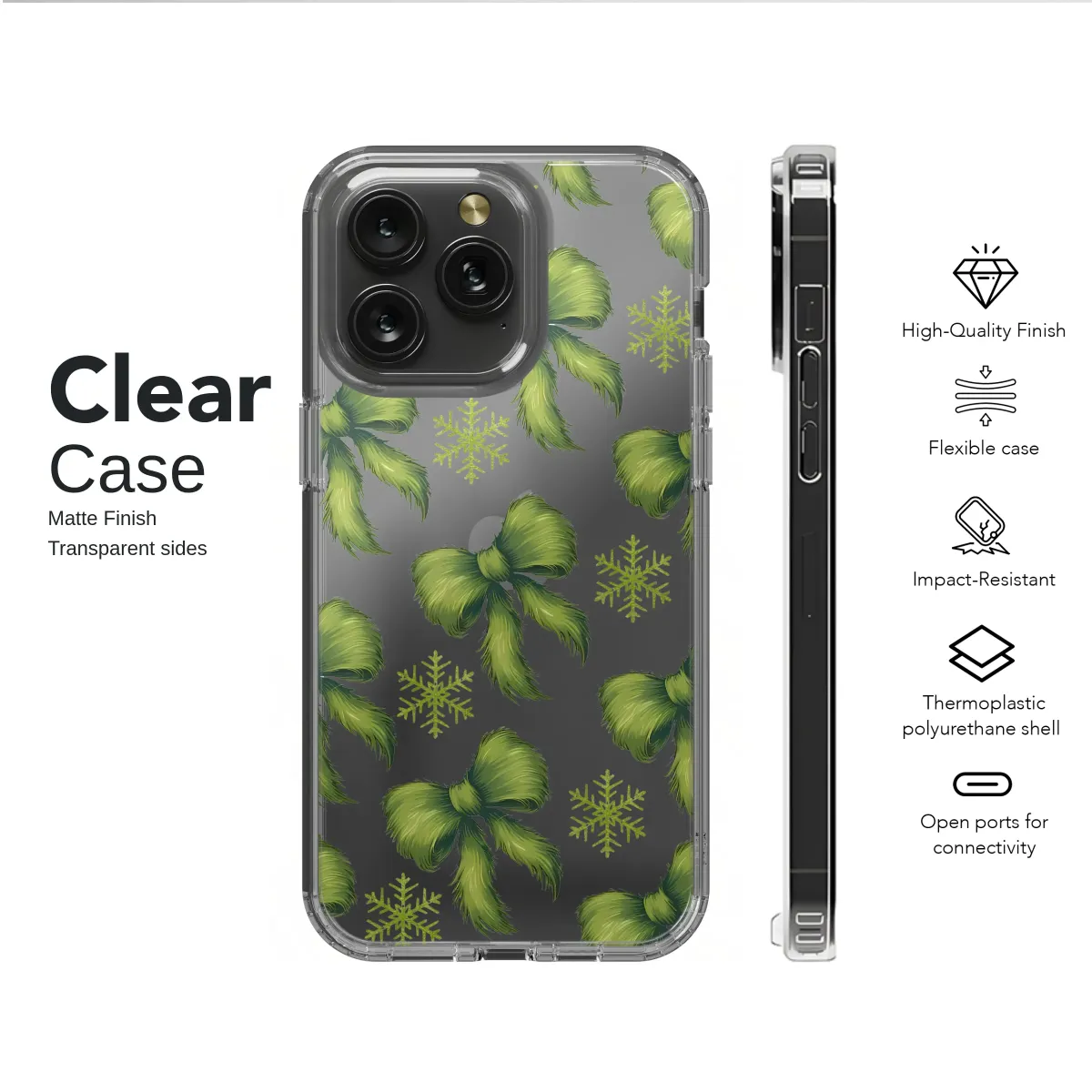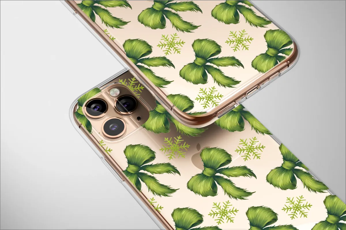 Clear Whimsical Green Christmas Bows Pattern Phone Case iPhone Samsung Cover Pixel 8089
