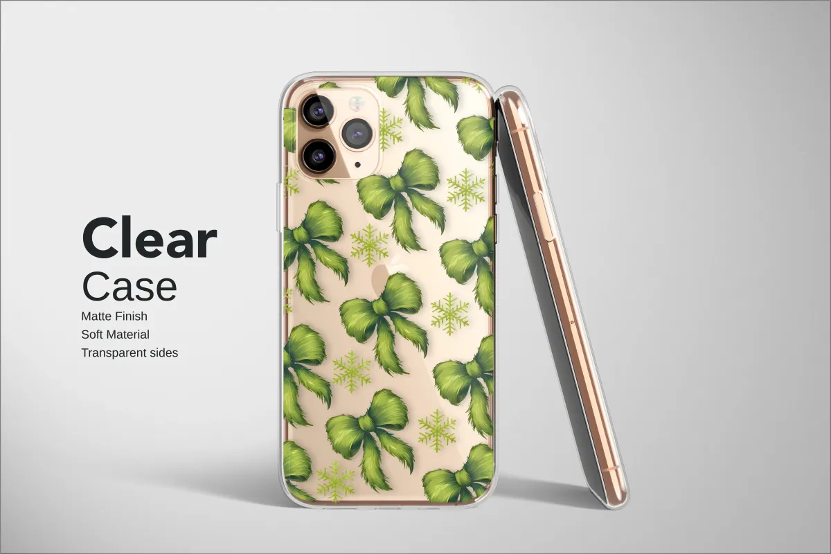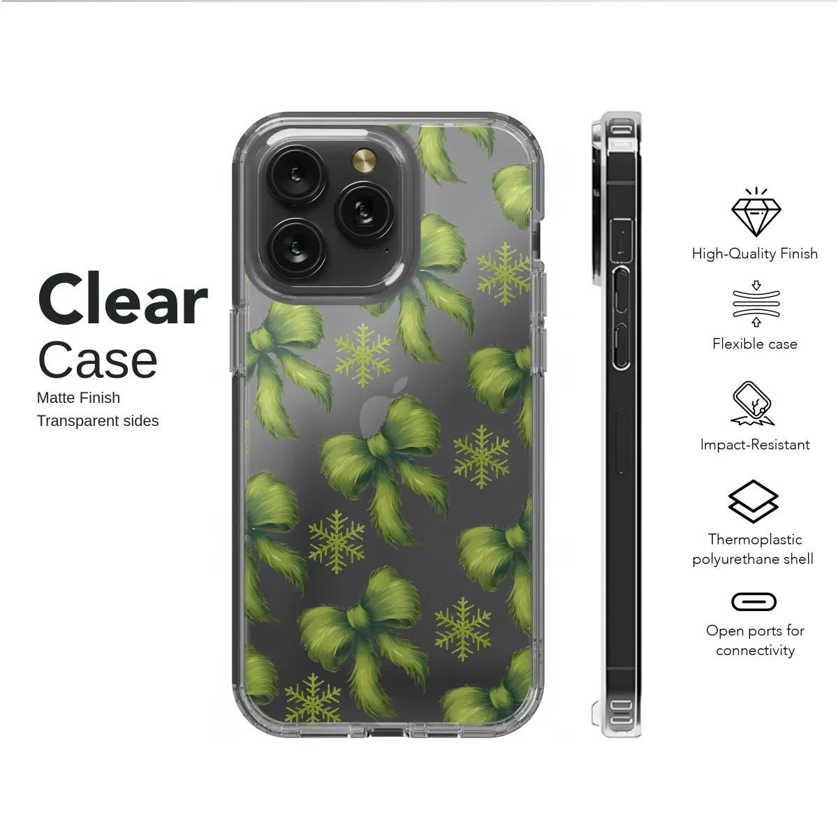 Clear Whimsical Green Holiday Bows Pattern Phone Case iPhone Samsung Cover Pixel 8061