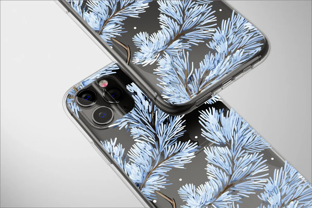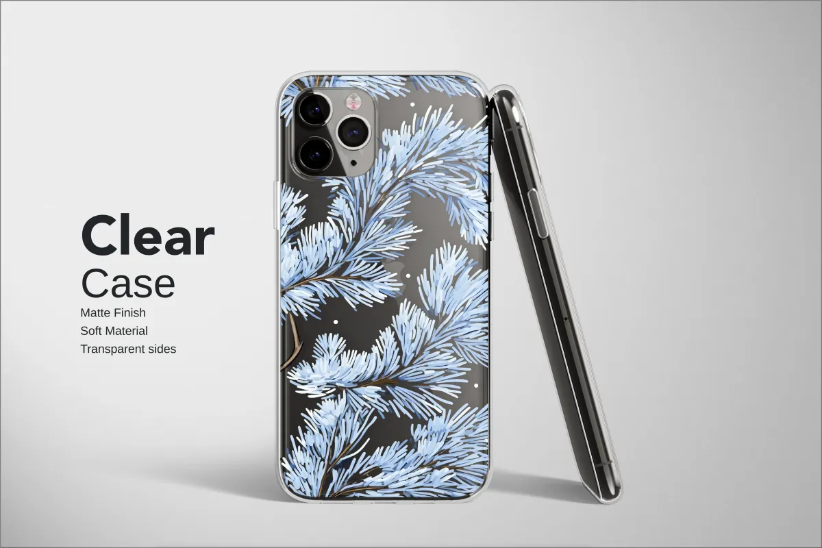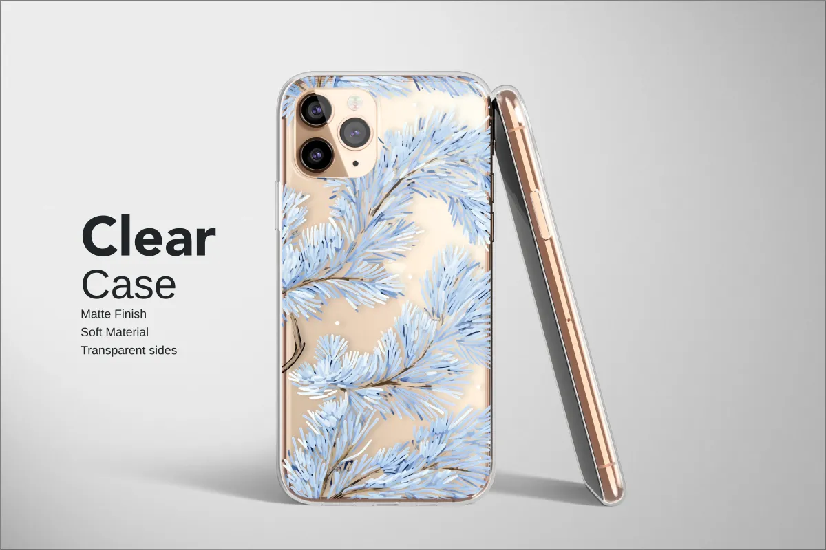 Clear Winter Pine Branch Phone Case Frosted Botanical Graphic Cover Phone Case iPhone Samsung Cover Pixel 8122