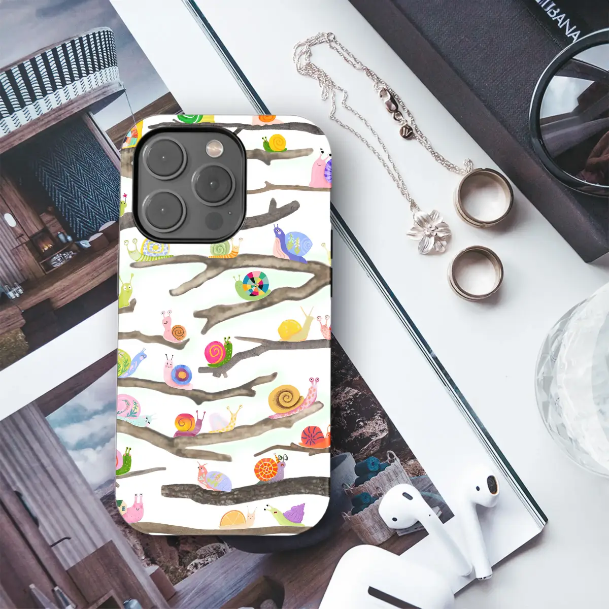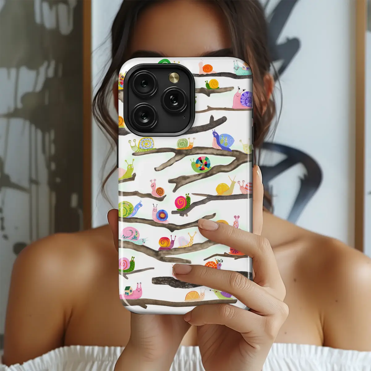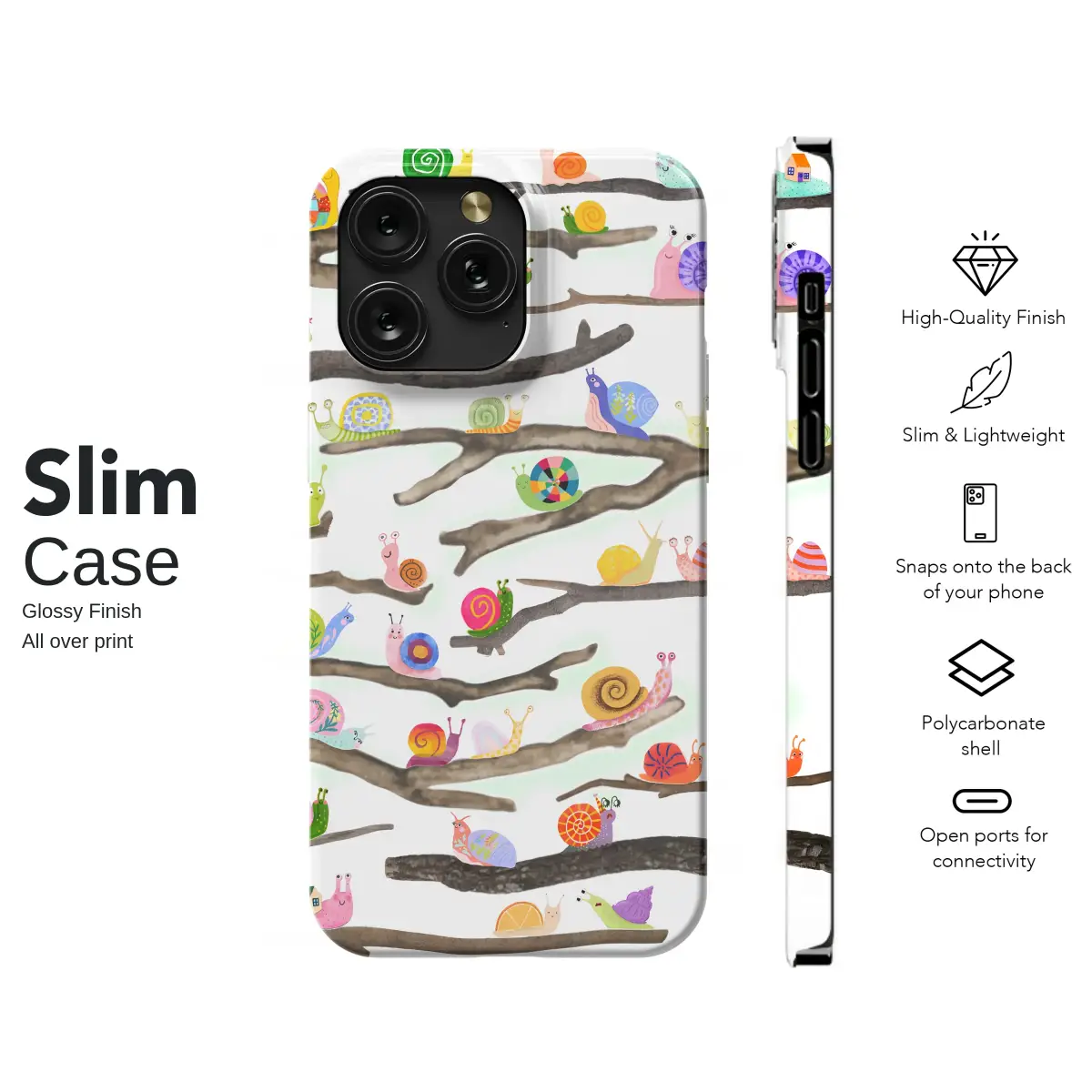 Colorful Snail Pattern Whimsical Garden Illustration Phone Case Cover for iPhone 17 Pro Max 16 15 13 Samsung S26 S25 Pixel 9904