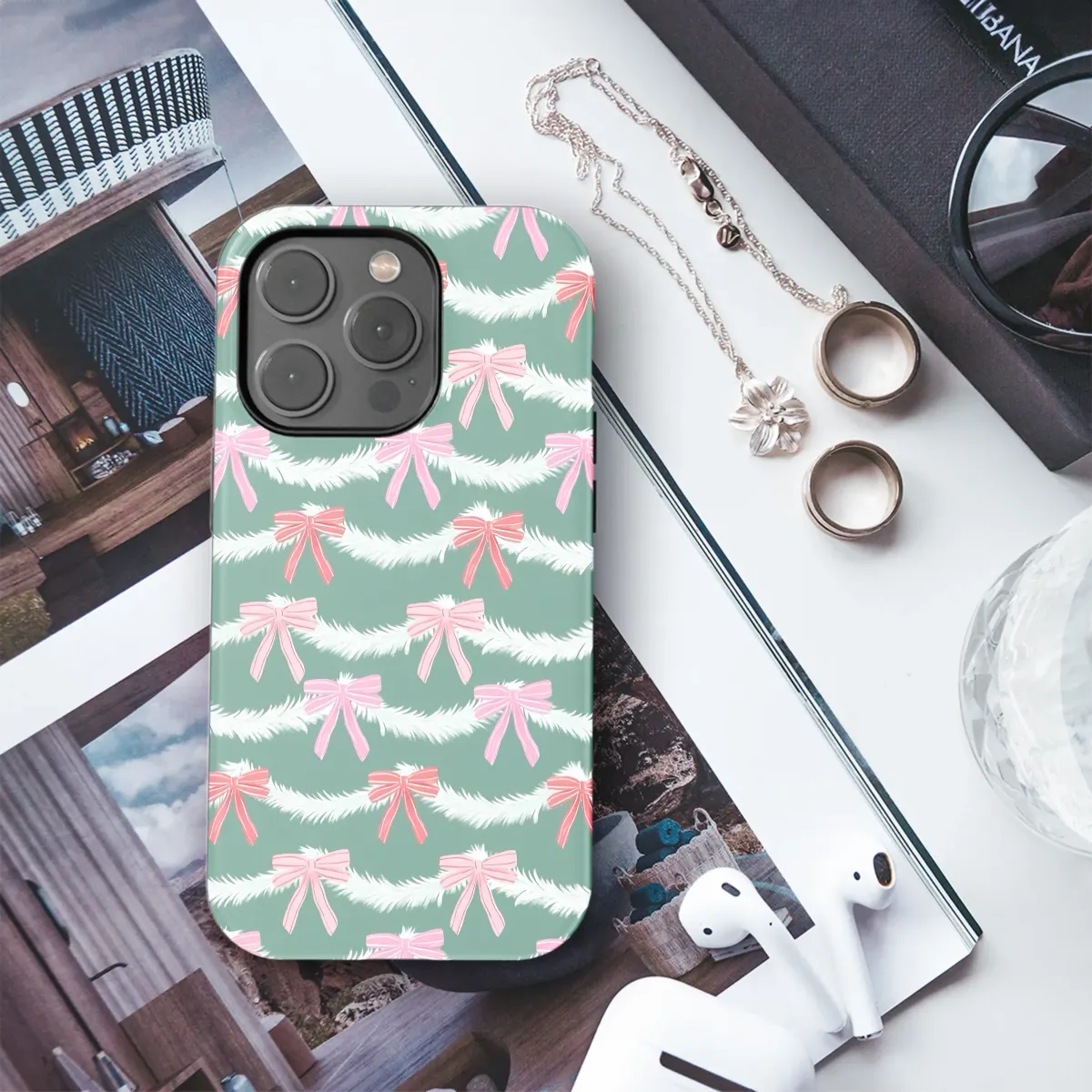 Coquette Pink Bows Holiday Garland Pattern Phone Case Cover for iPhone 17 Pro Max 16 15 Plus 14 13 Mini Samsung S25 S24 Pixel 10 9 8533 - Image 1