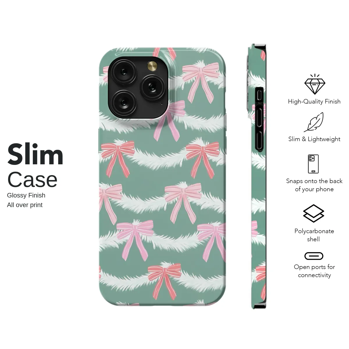 Coquette Pink Bows Holiday Garland Pattern Phone Case Cover for iPhone 17 Pro Max 16 15 Plus 14 13 Mini Samsung S25 S24 Pixel 10 9 8533